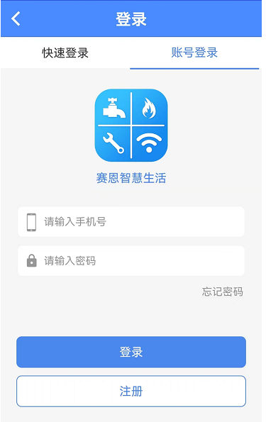 打開智慧生活A(yù)PP,可以以“快速登錄”或“賬號(hào)登錄”兩種方式登錄。“快速登錄”需要輸入手機(jī)號(hào)、獲取驗(yàn)證碼之后,輸入驗(yàn)證碼直接登錄。“賬號(hào)登錄”需要輸入已注冊(cè)的手機(jī)號(hào)以及密碼進(jìn)行登錄。如圖