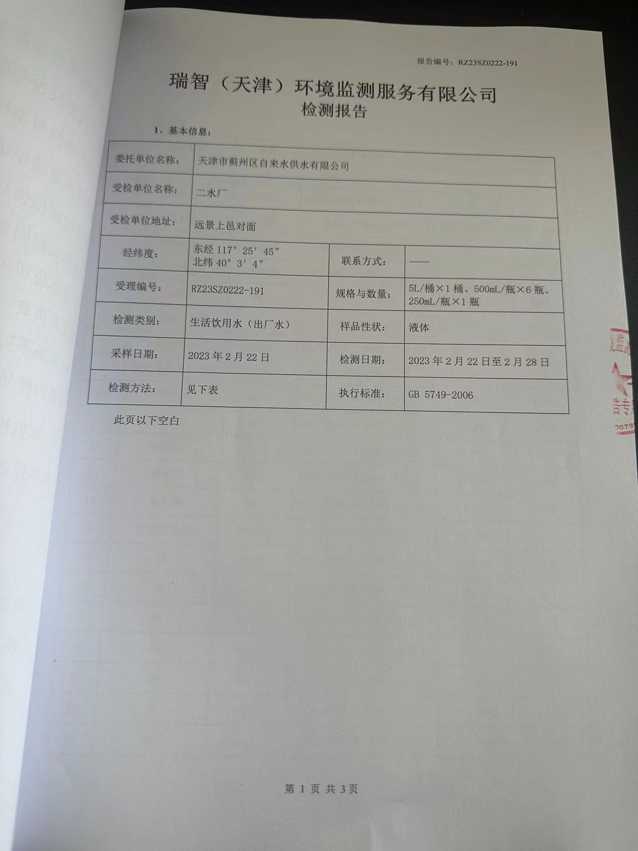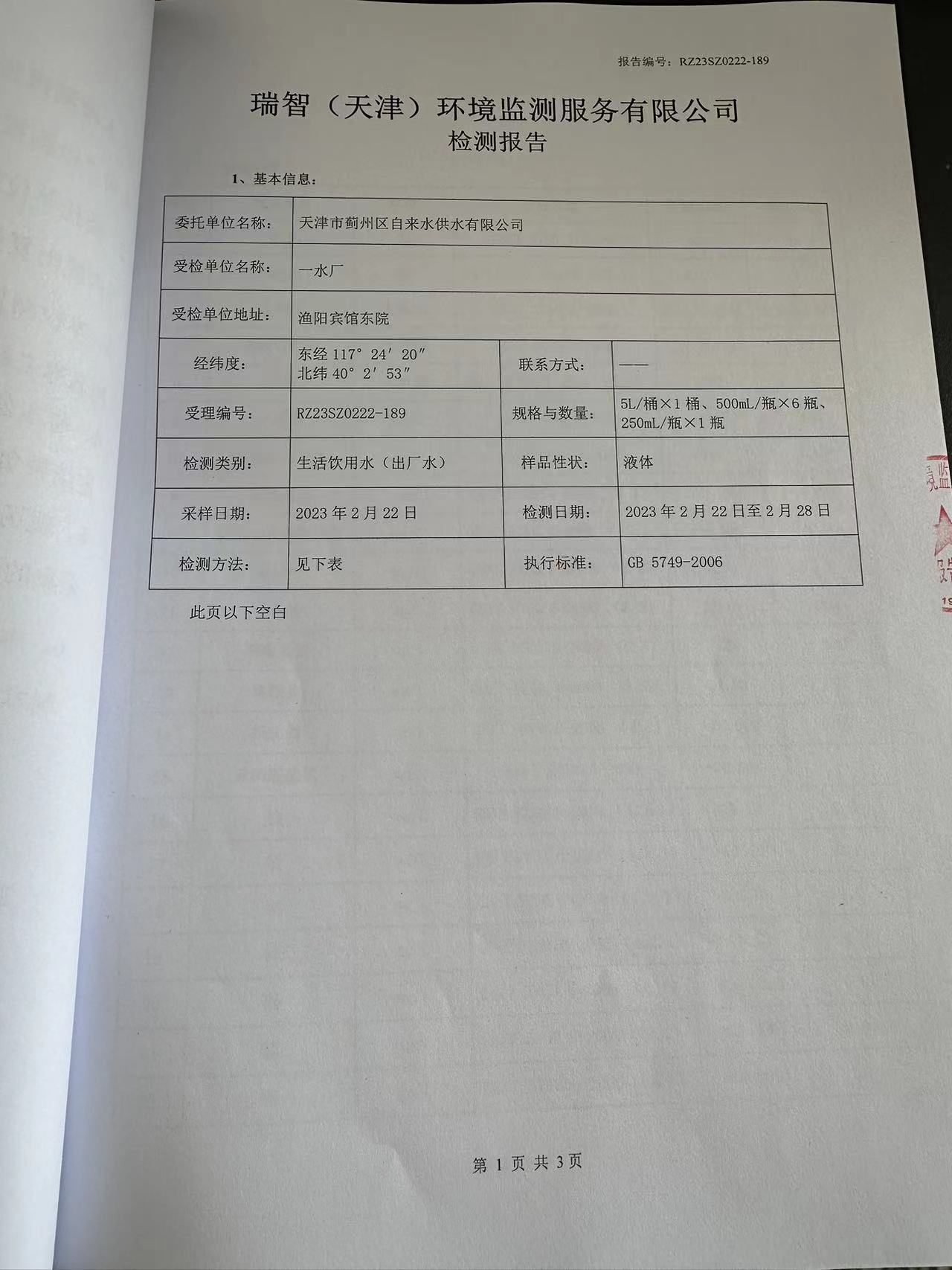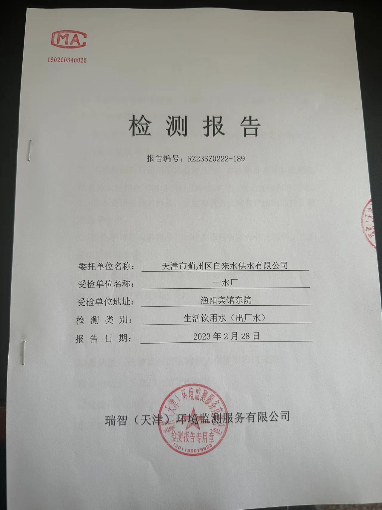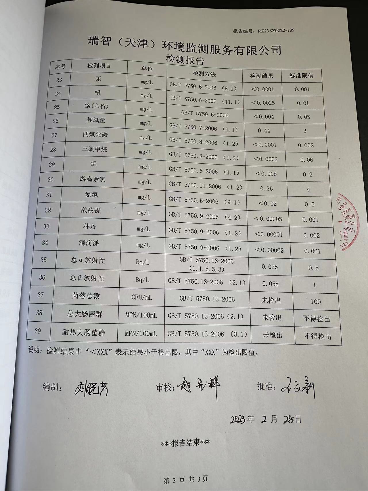 2023年2月份水質(zhì)檢測(cè)報(bào)告