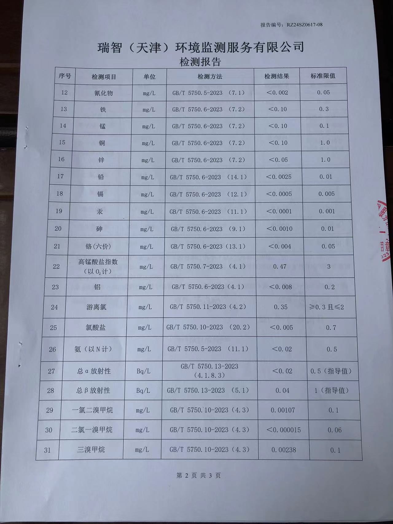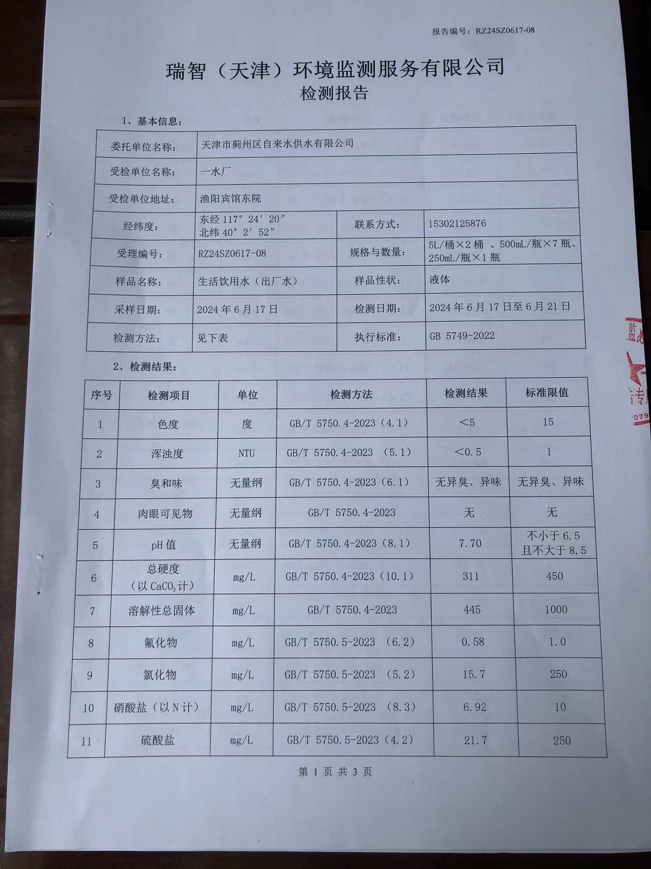 2024年6月份水質(zhì)檢測報告