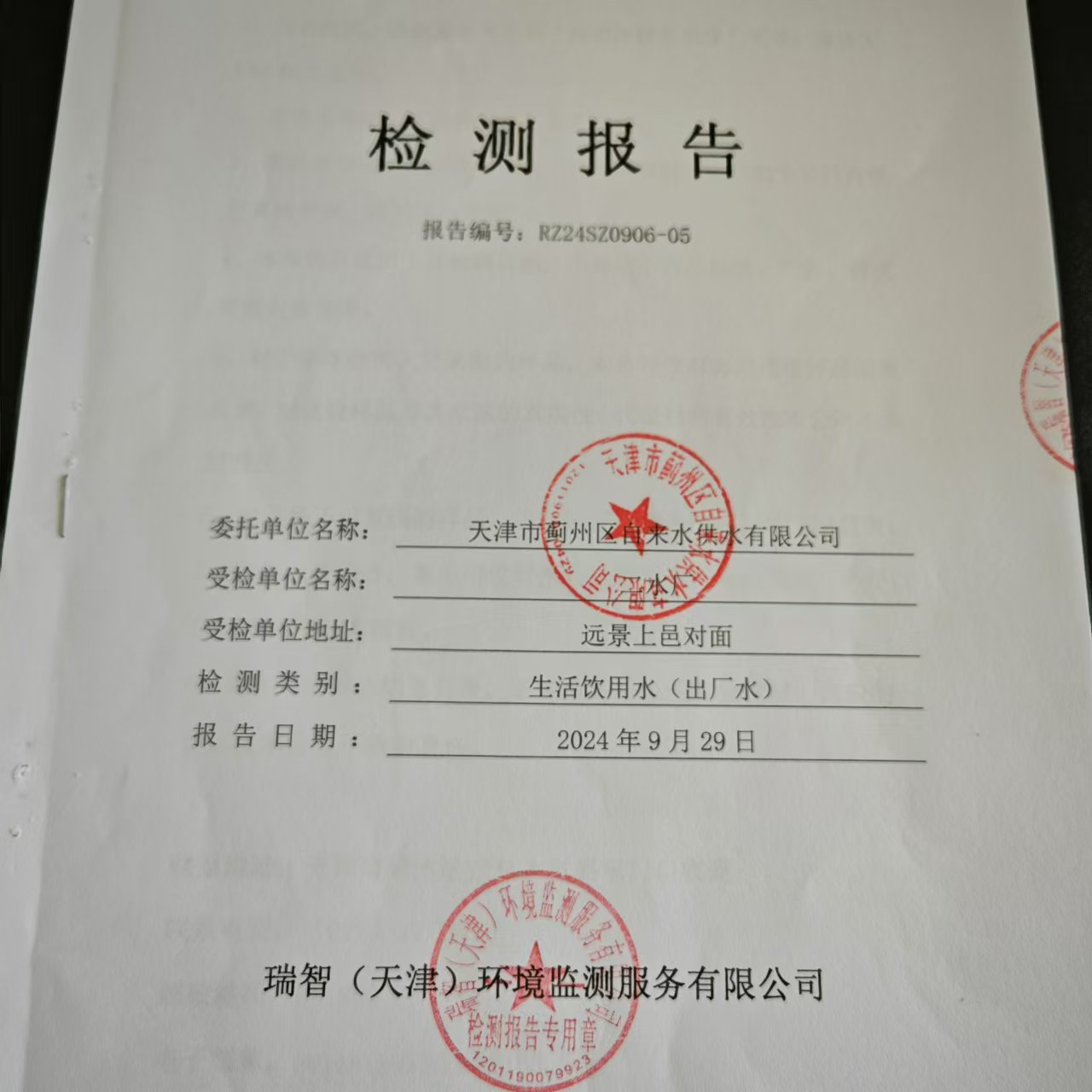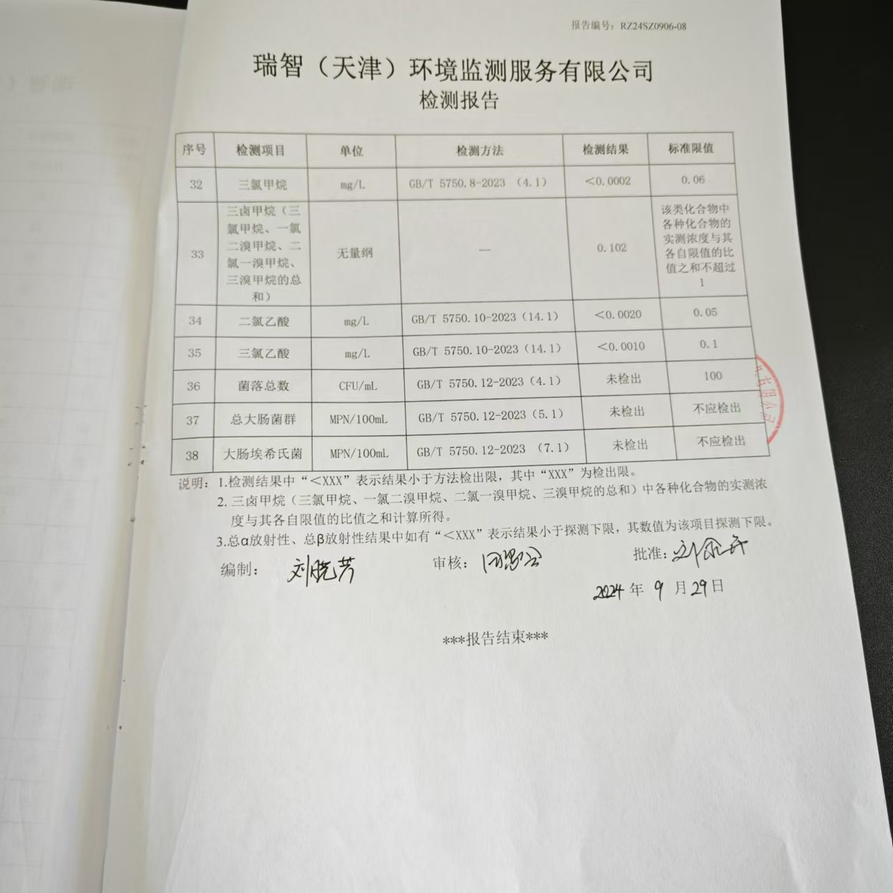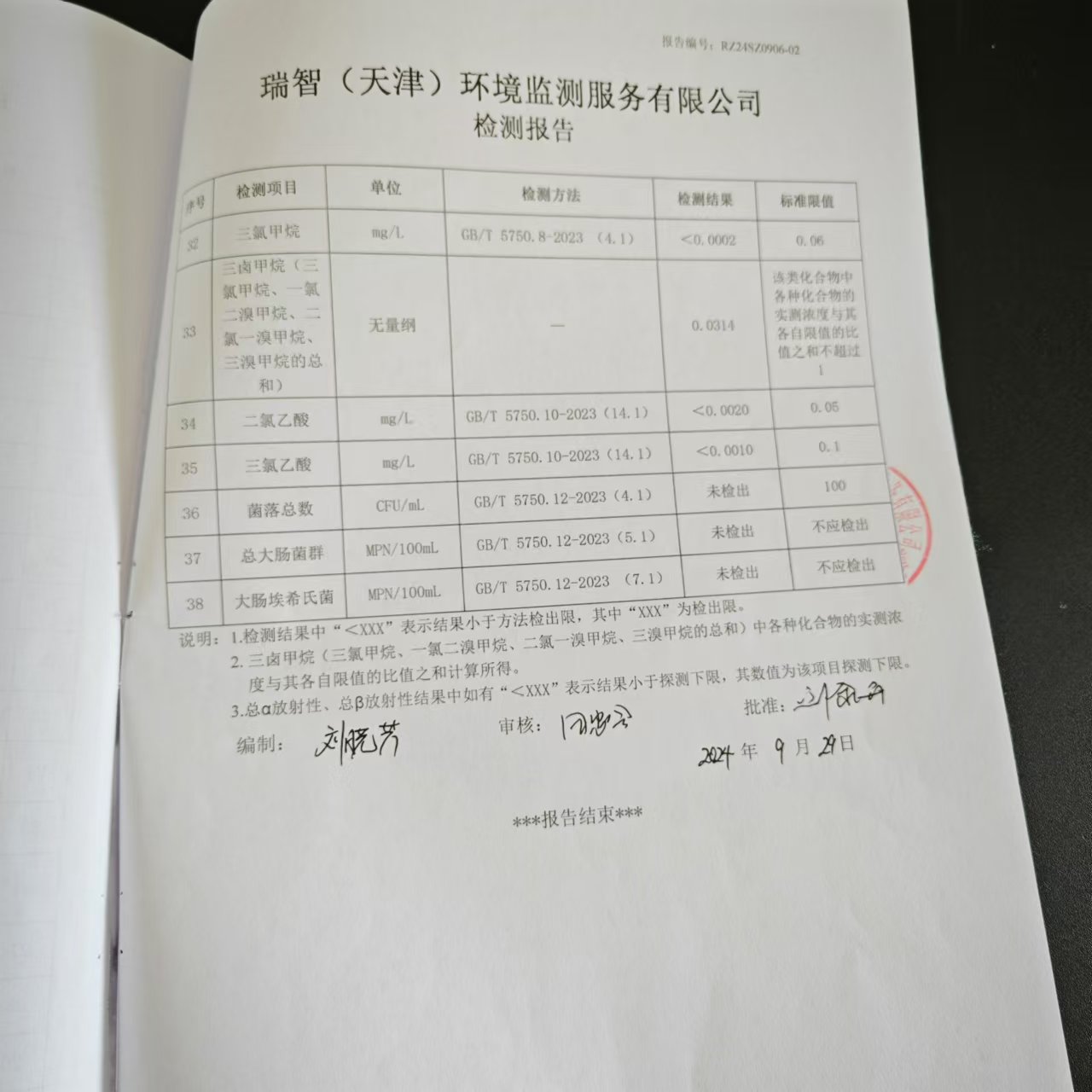 2024年9月份水質(zhì)檢測(cè)報(bào)告