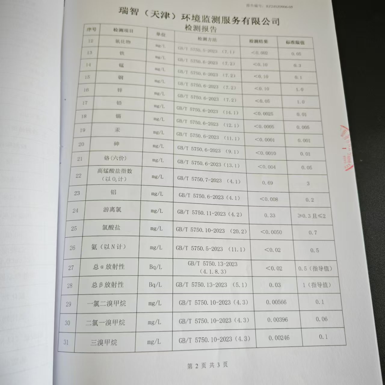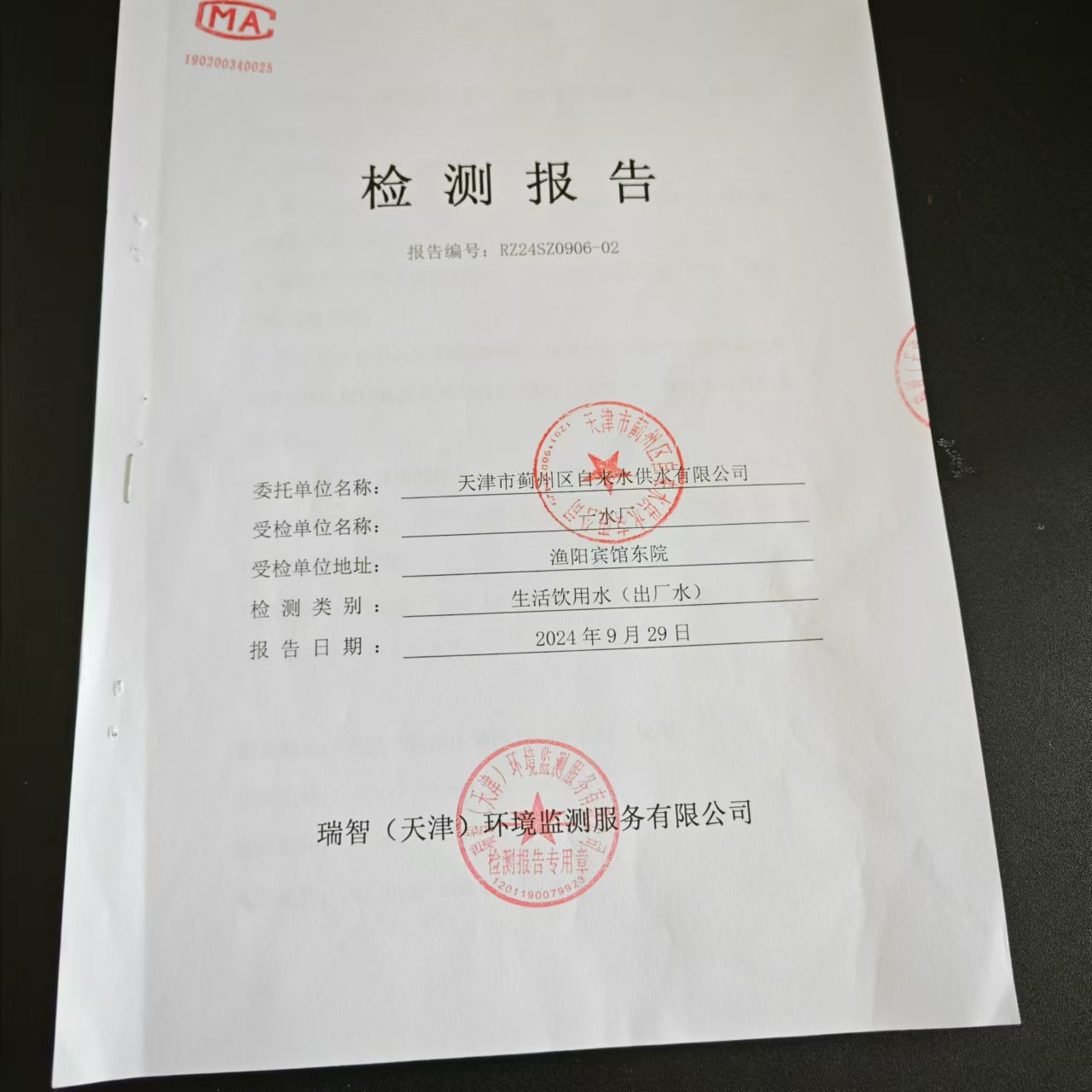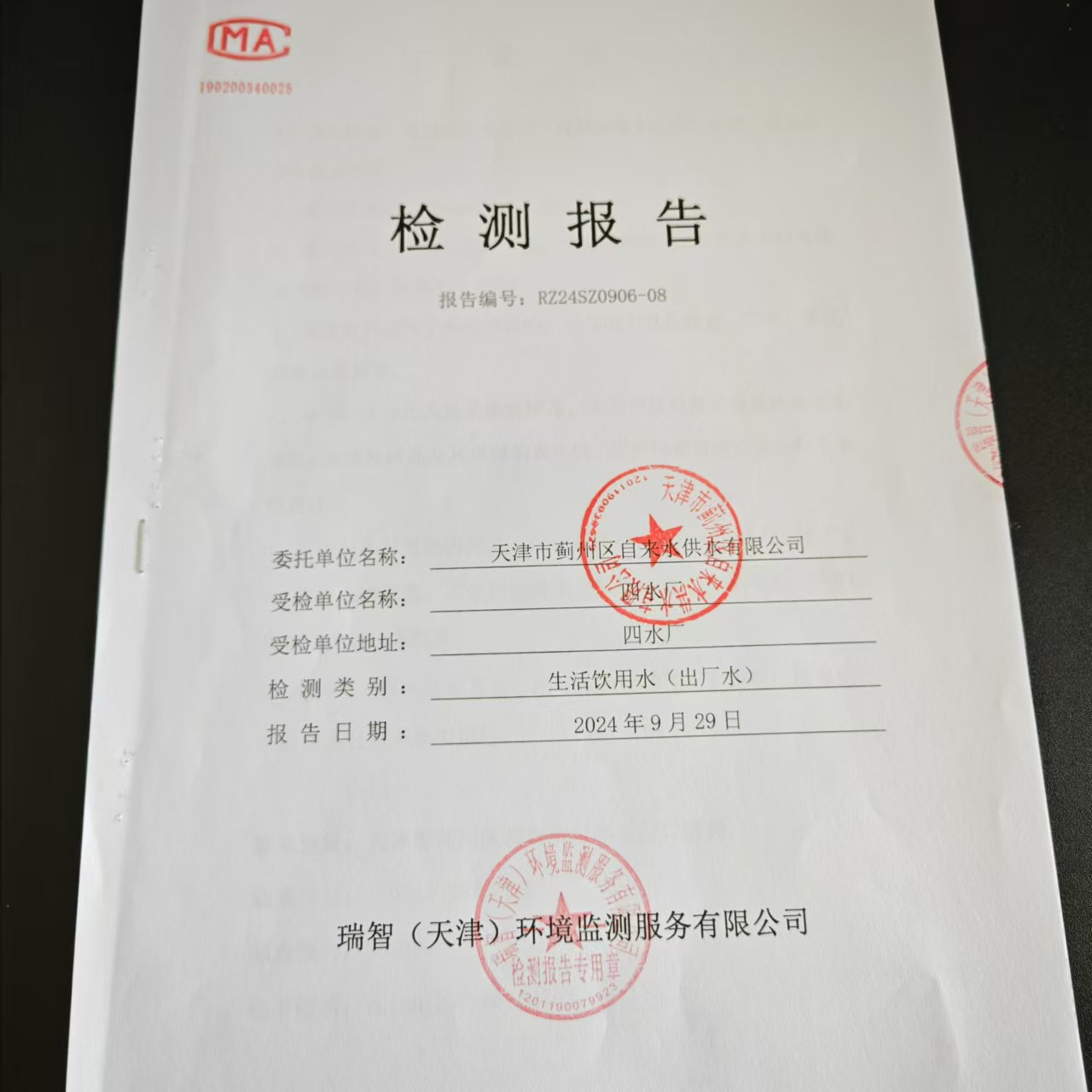 2024年9月份水質(zhì)檢測(cè)報(bào)告