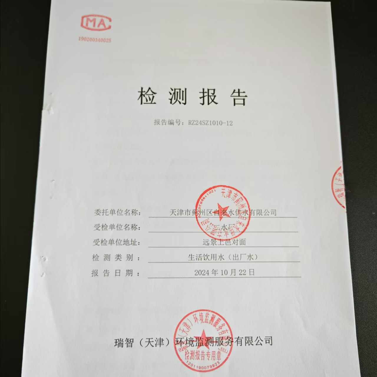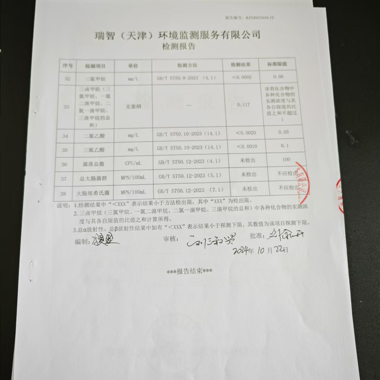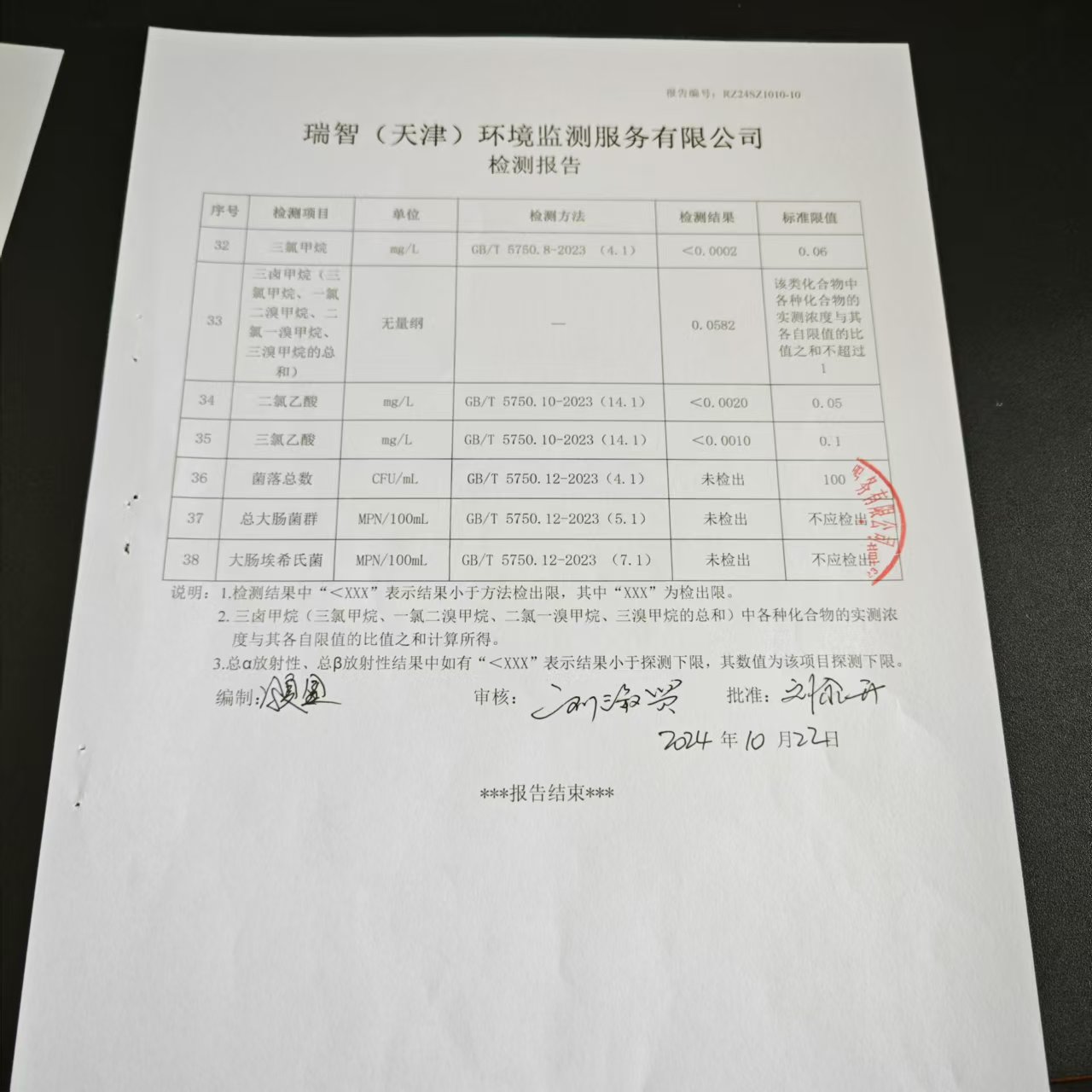 2024年10月份水質(zhì)檢測(cè)報(bào)告