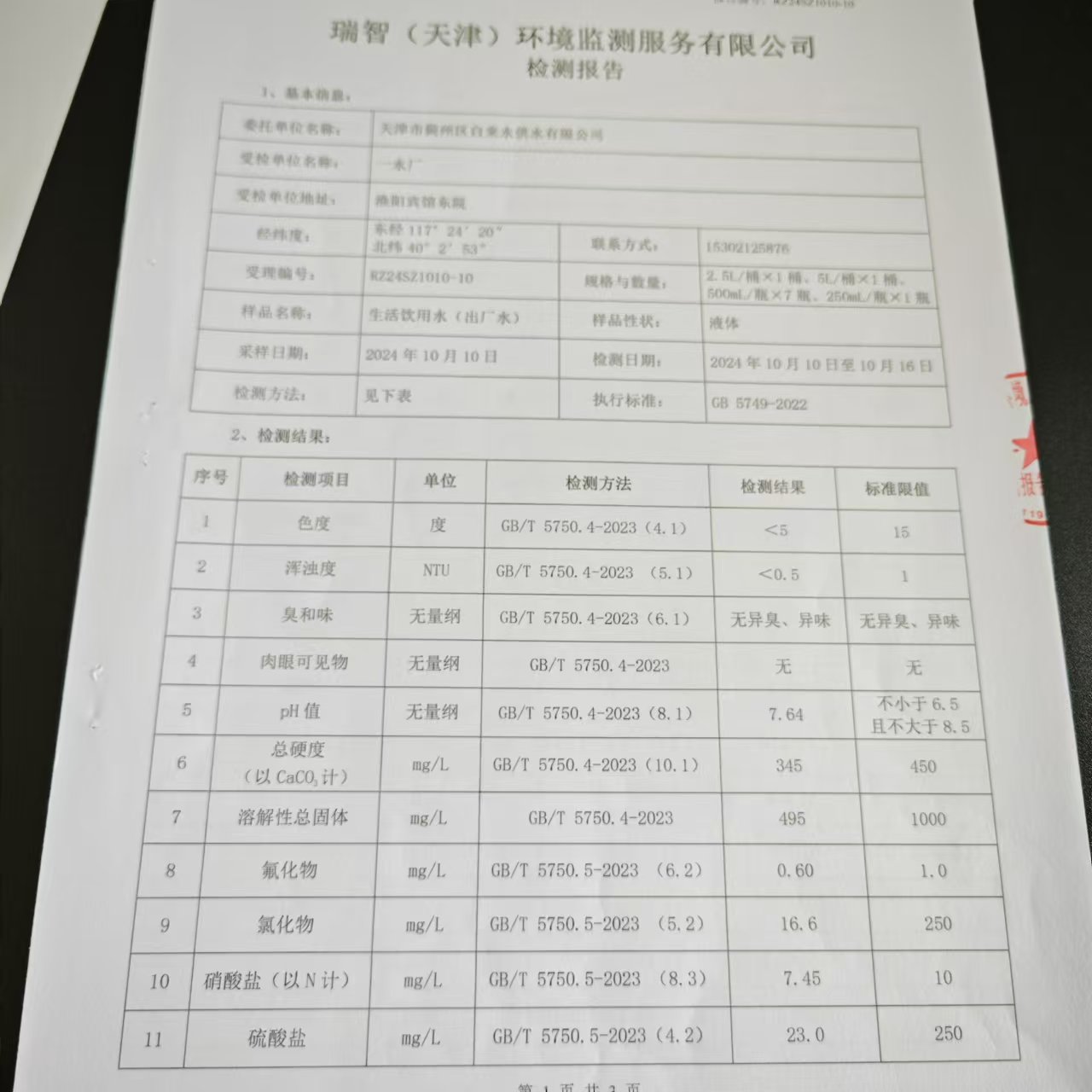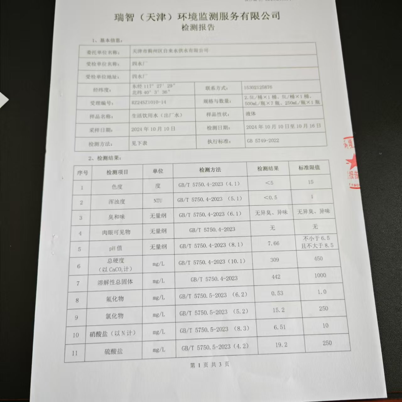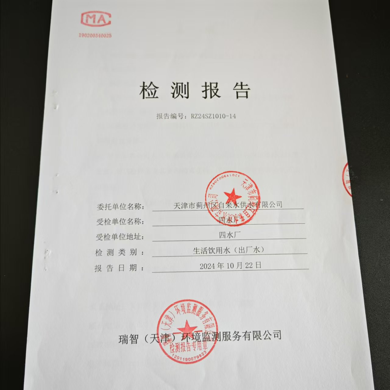 2024年10月份水質(zhì)檢測(cè)報(bào)告