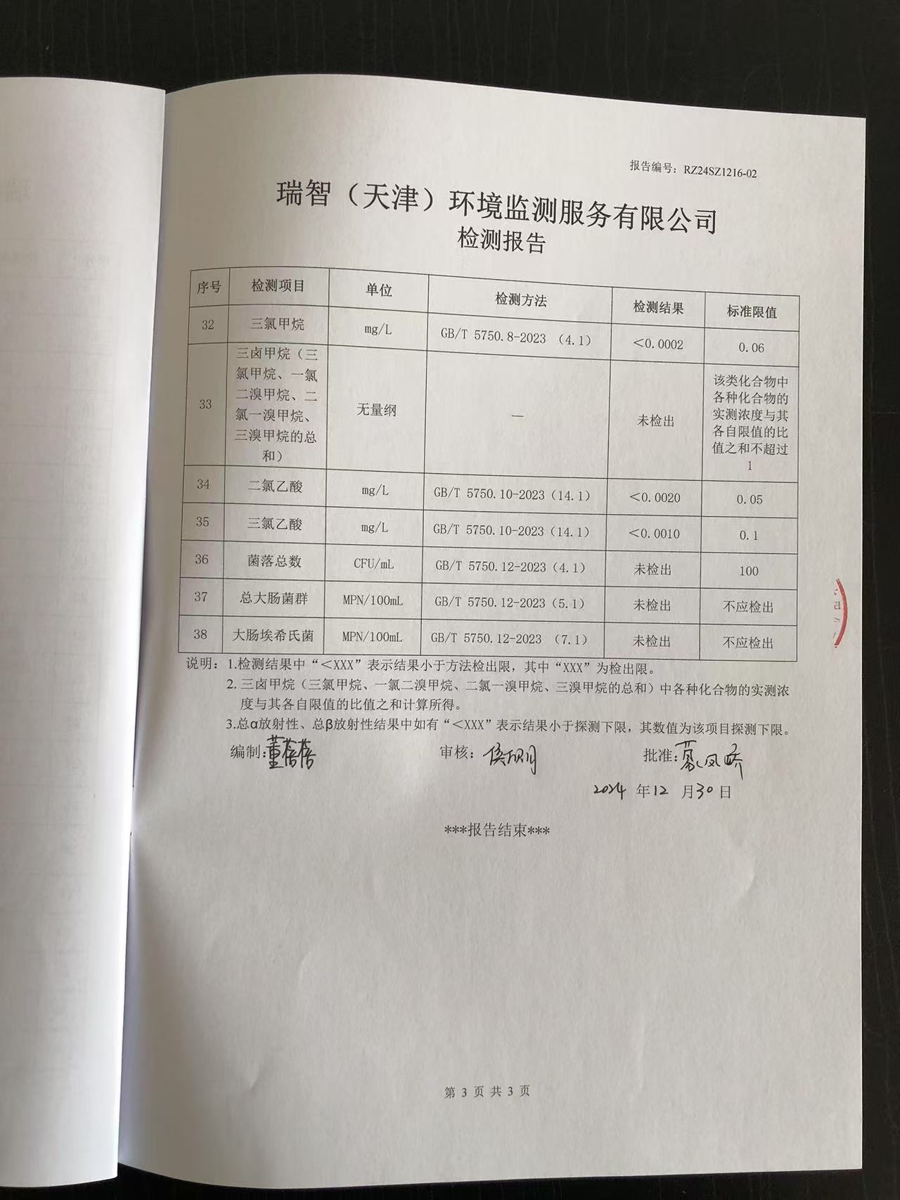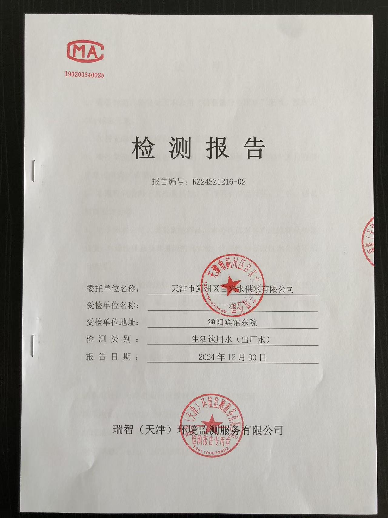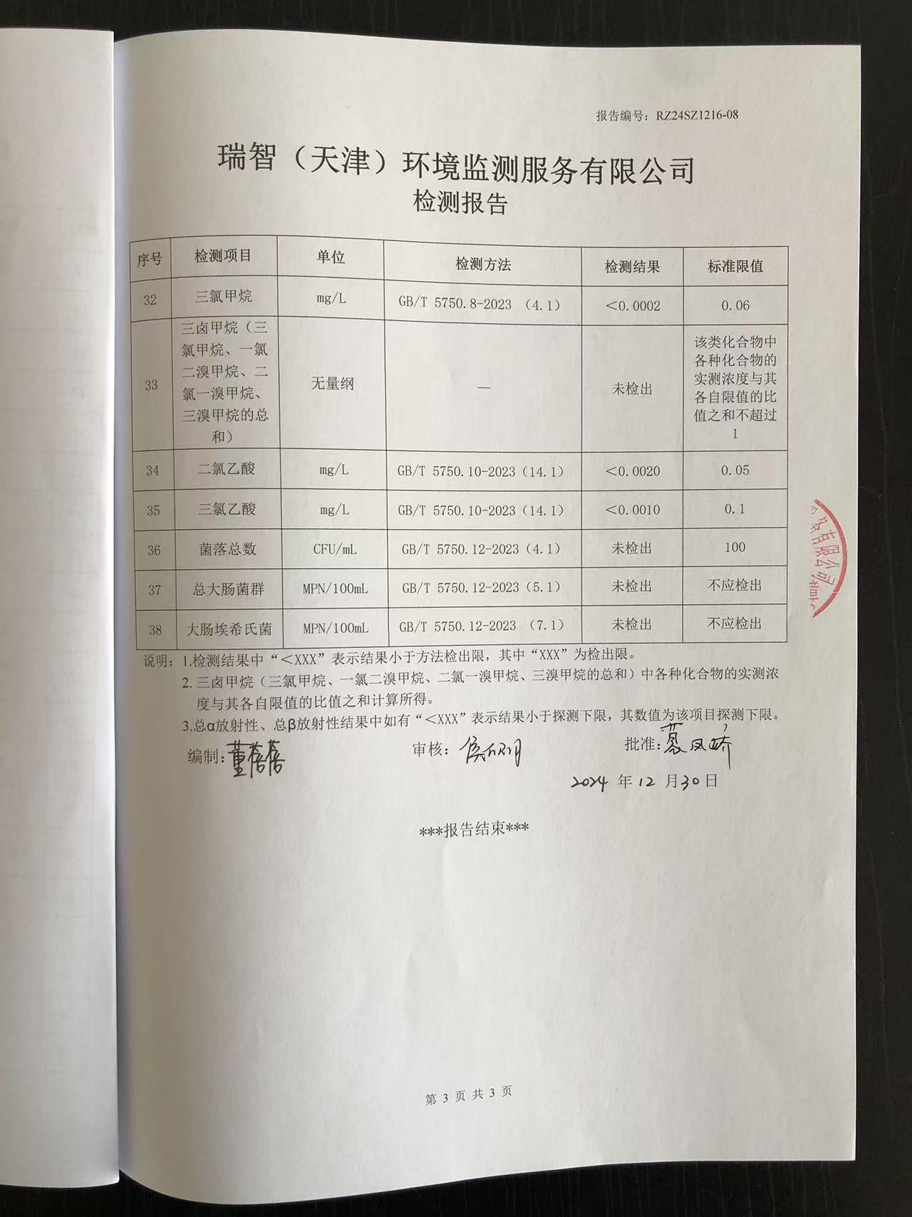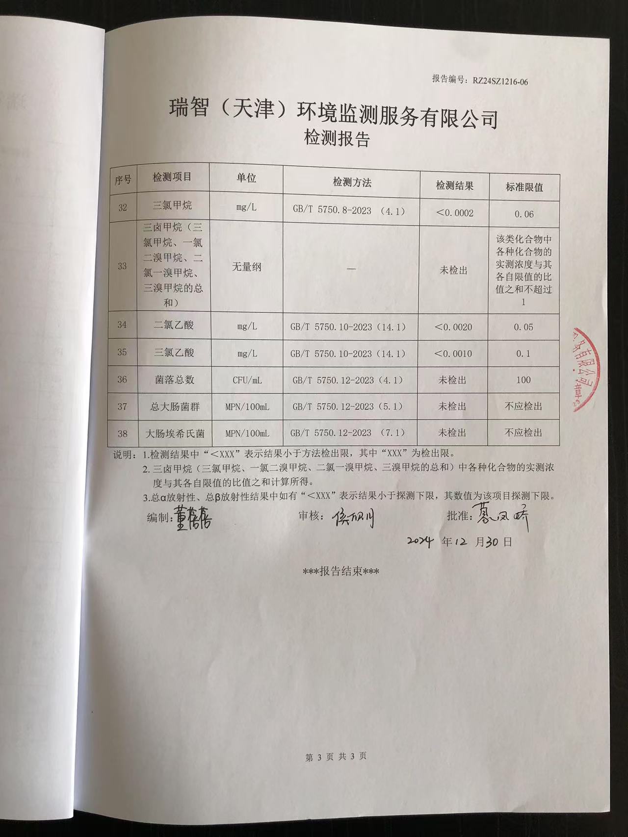 2024年12月份水質(zhì)檢測報告