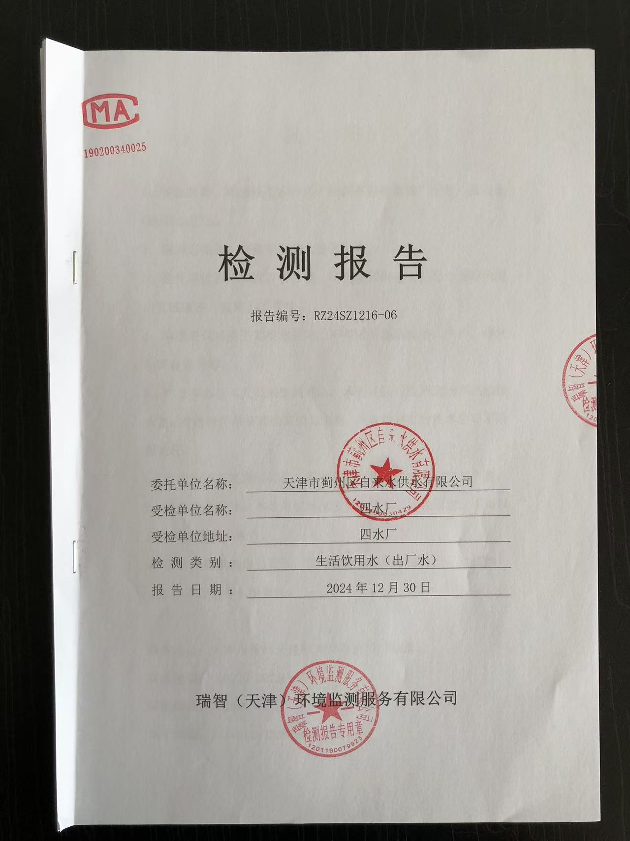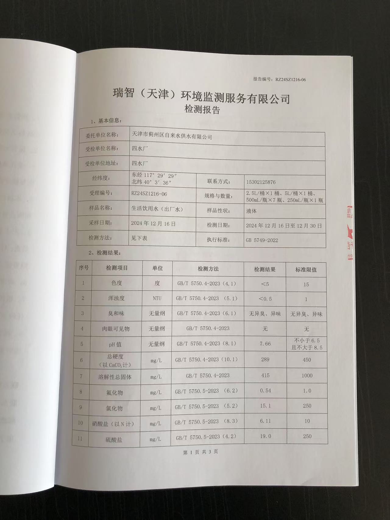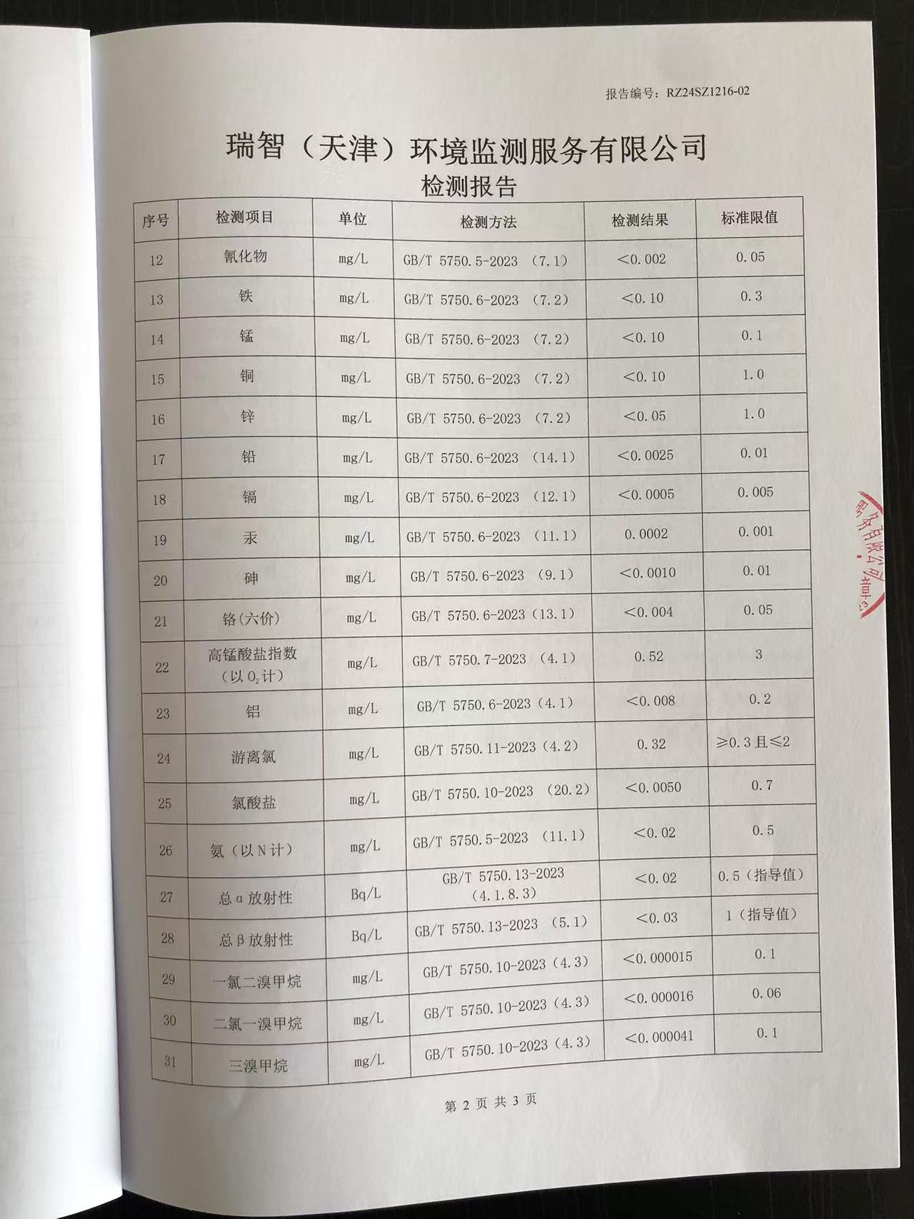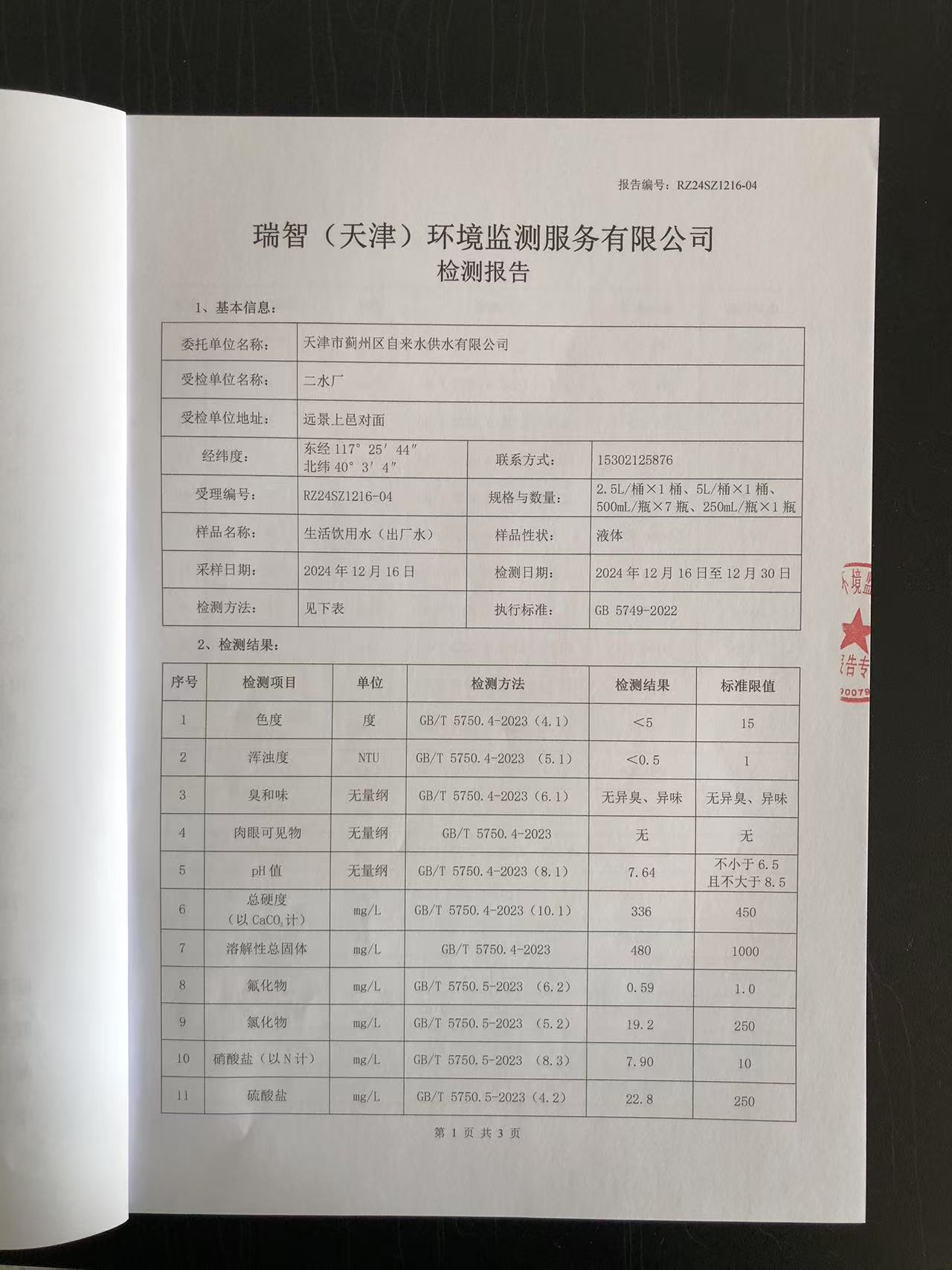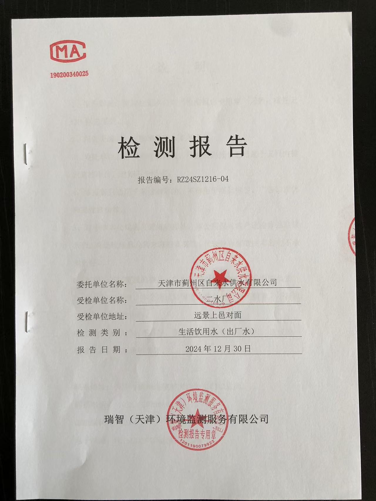 2024年12月份水質(zhì)檢測報告