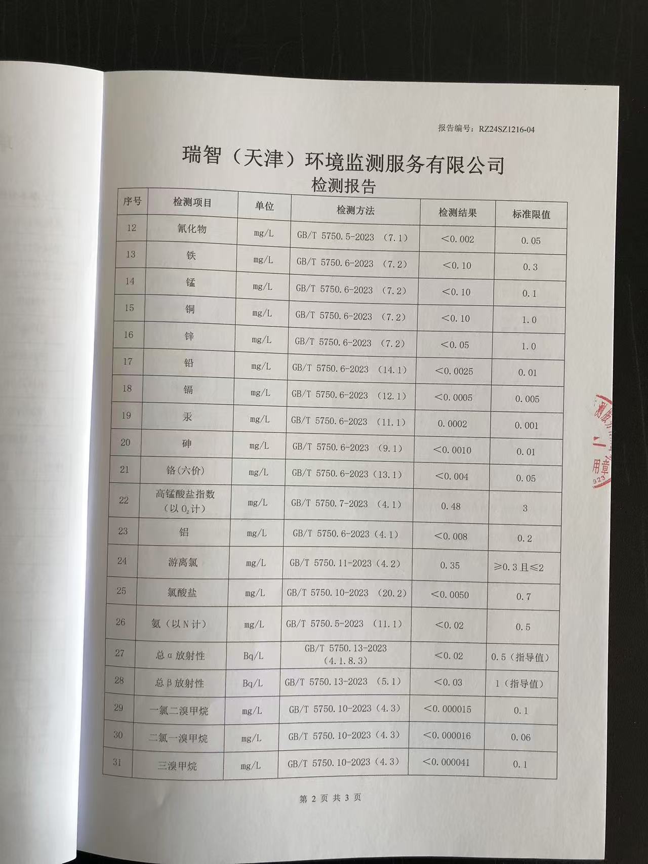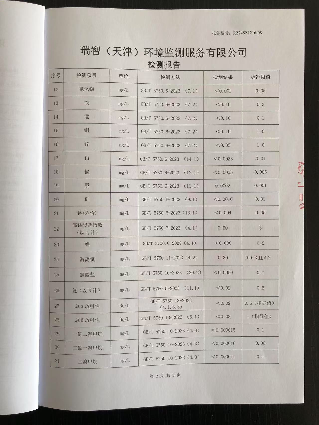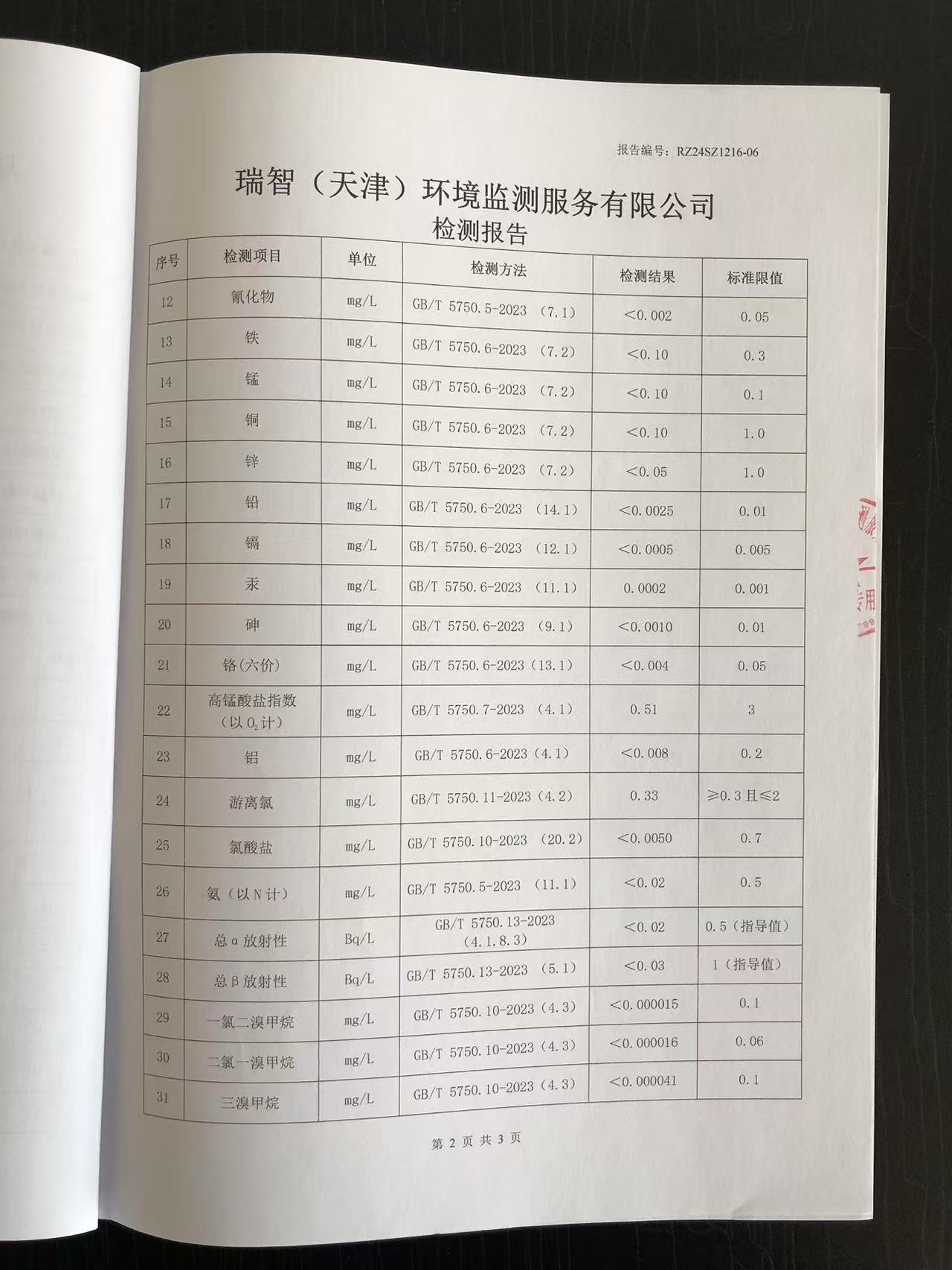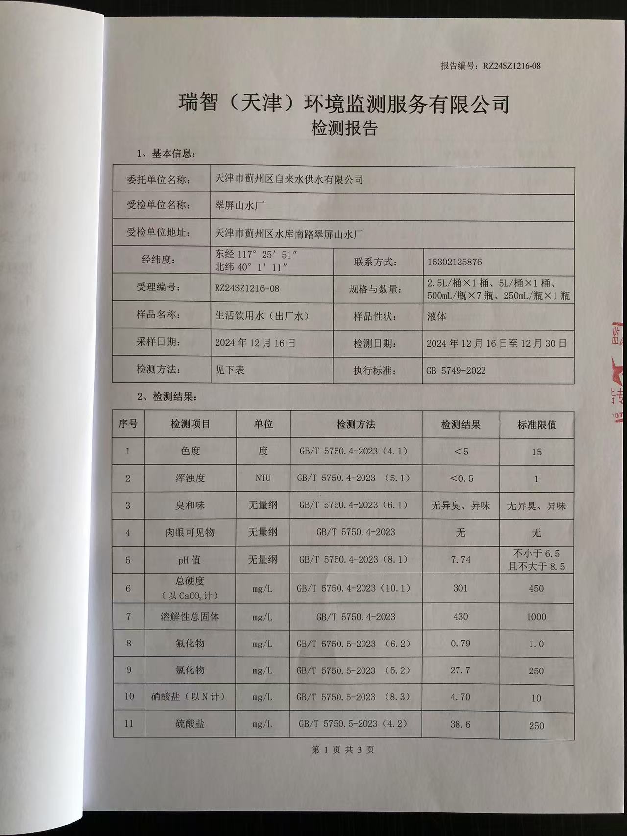 2024年12月份水質(zhì)檢測報告