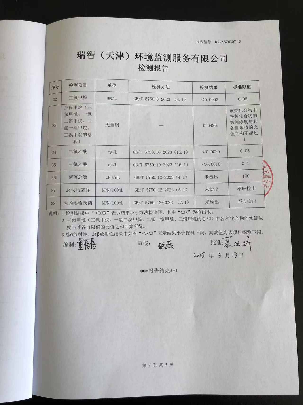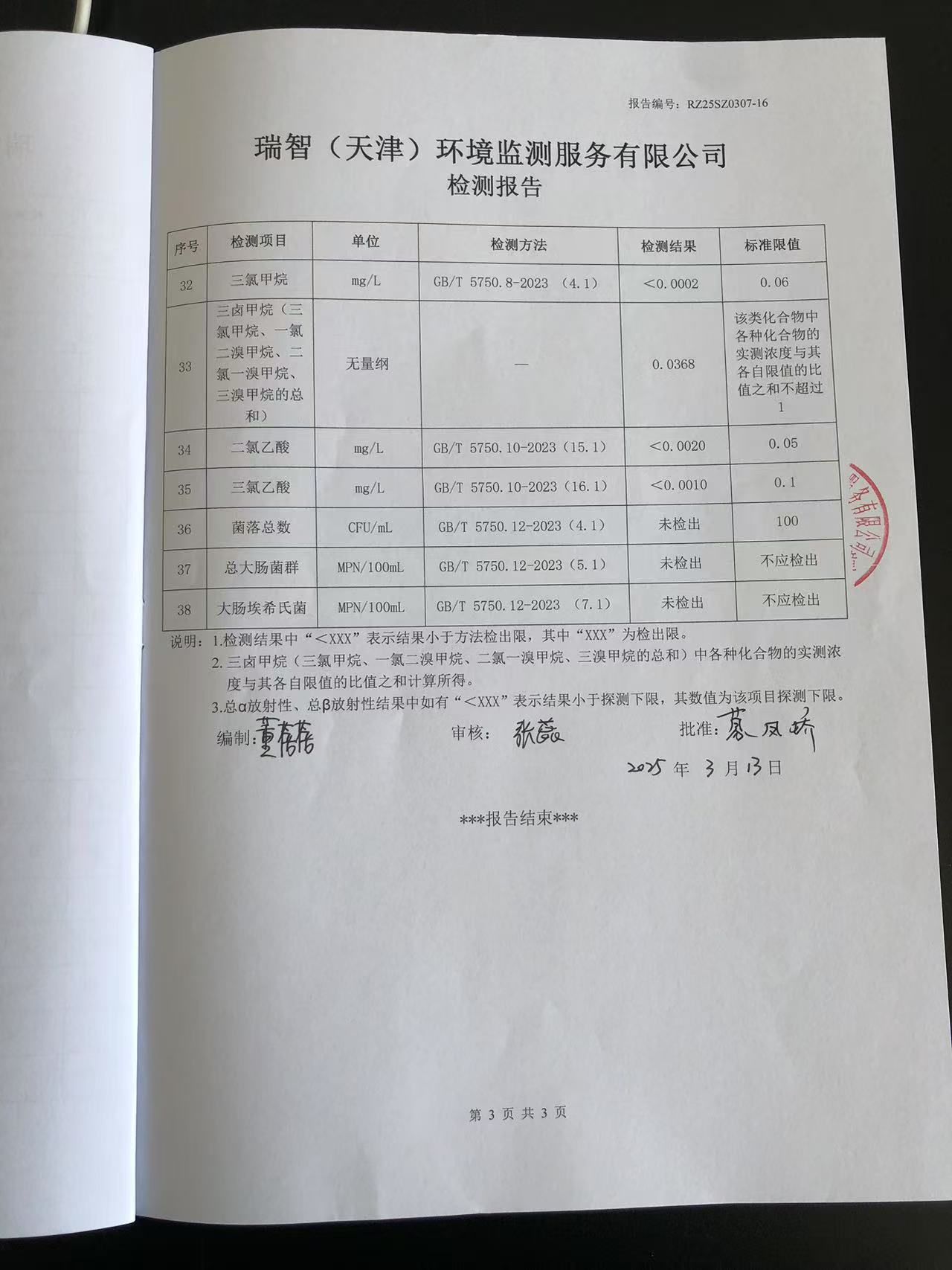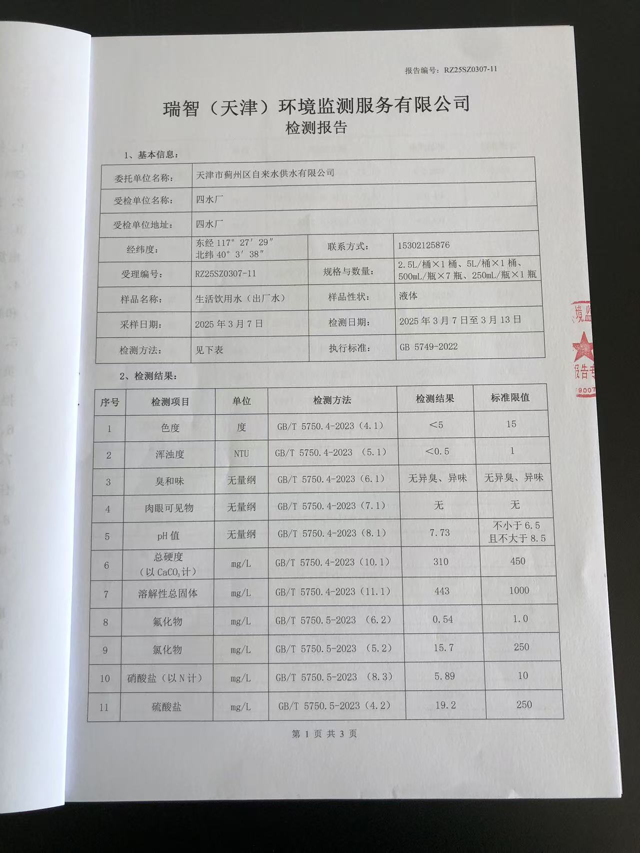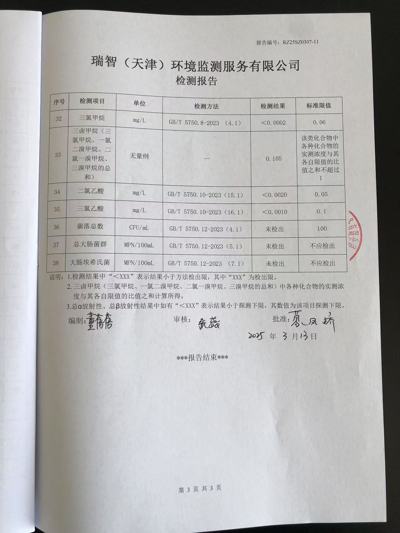 2025年3月份水質(zhì)檢測(cè)報(bào)告