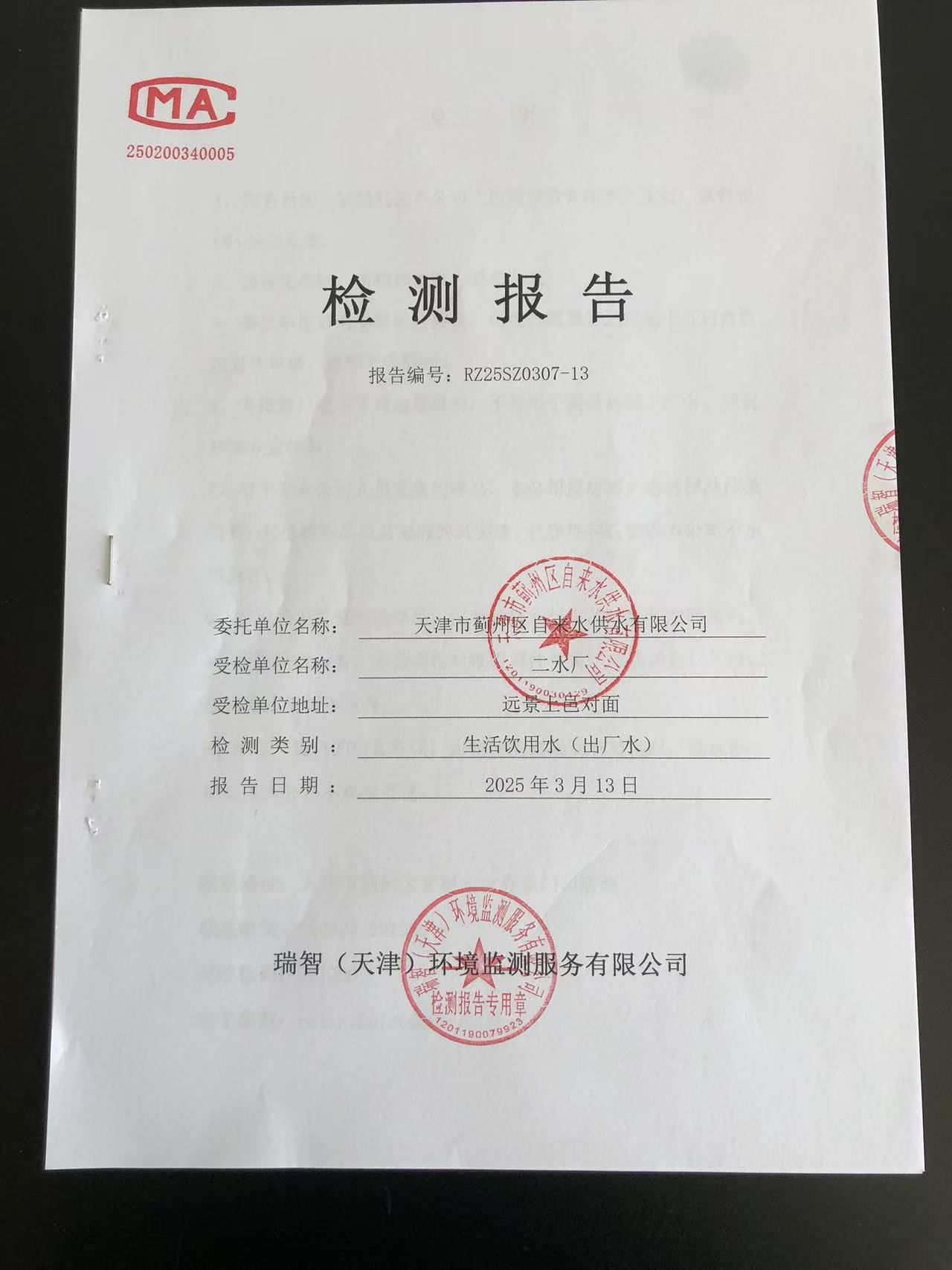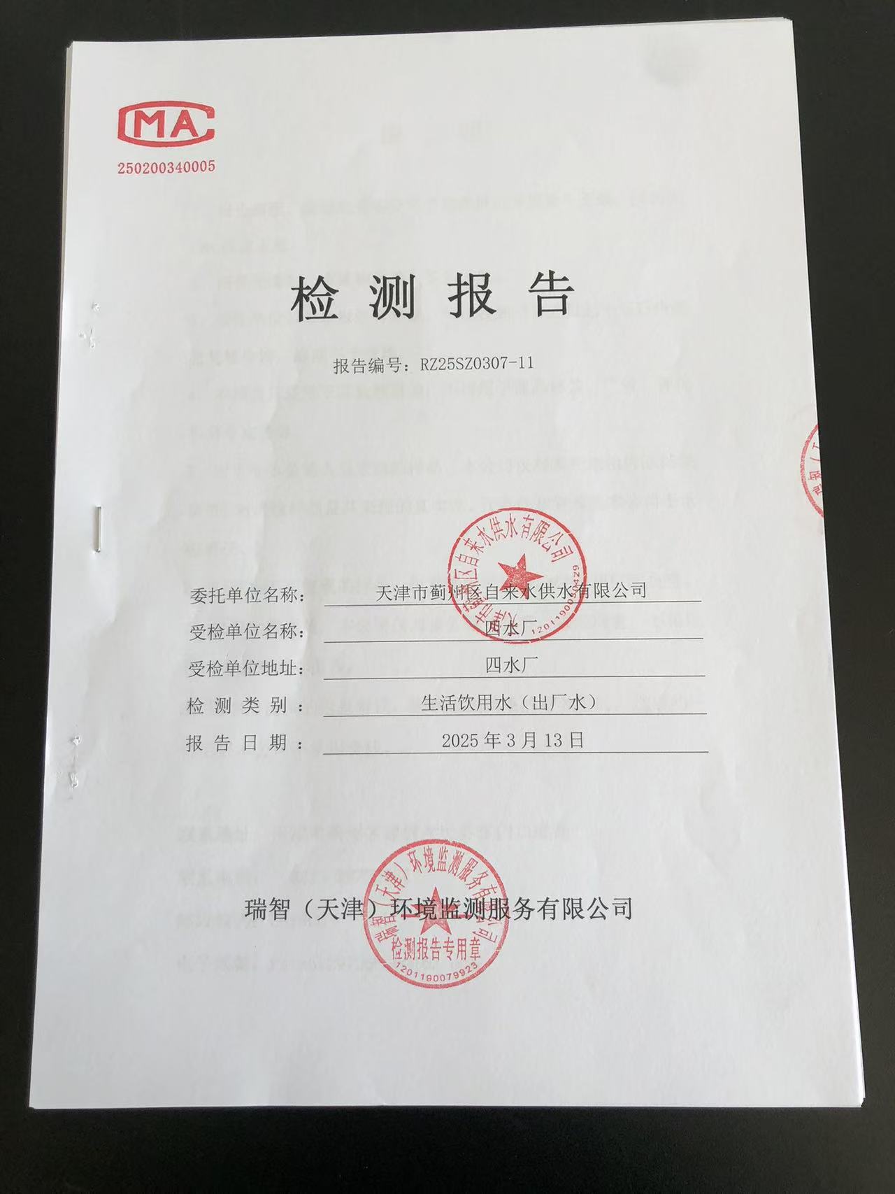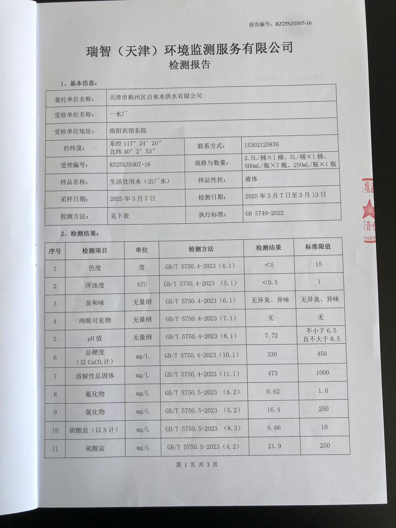 2025年3月份水質(zhì)檢測(cè)報(bào)告