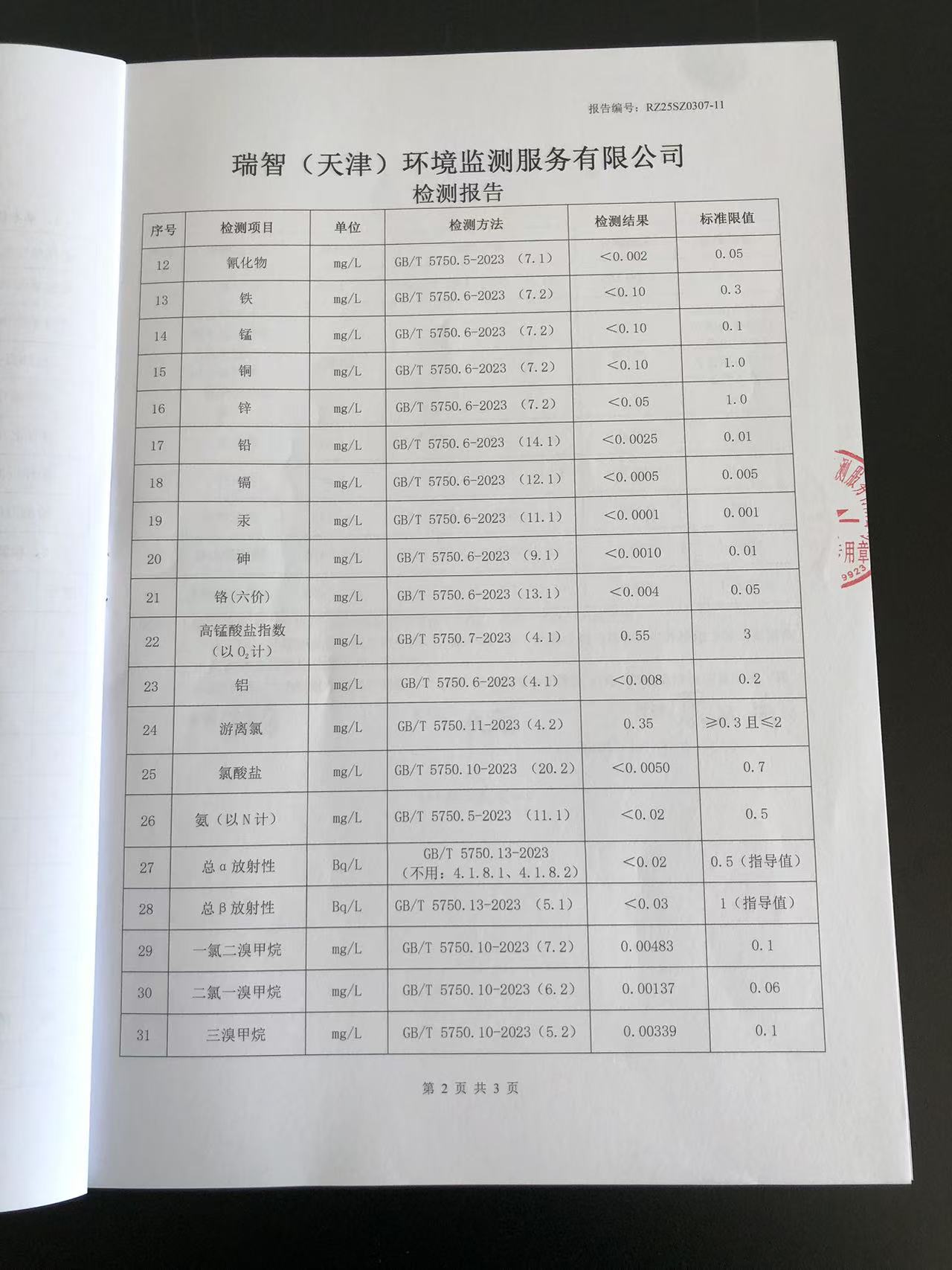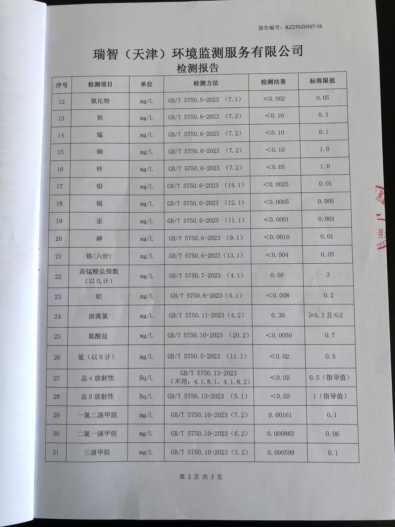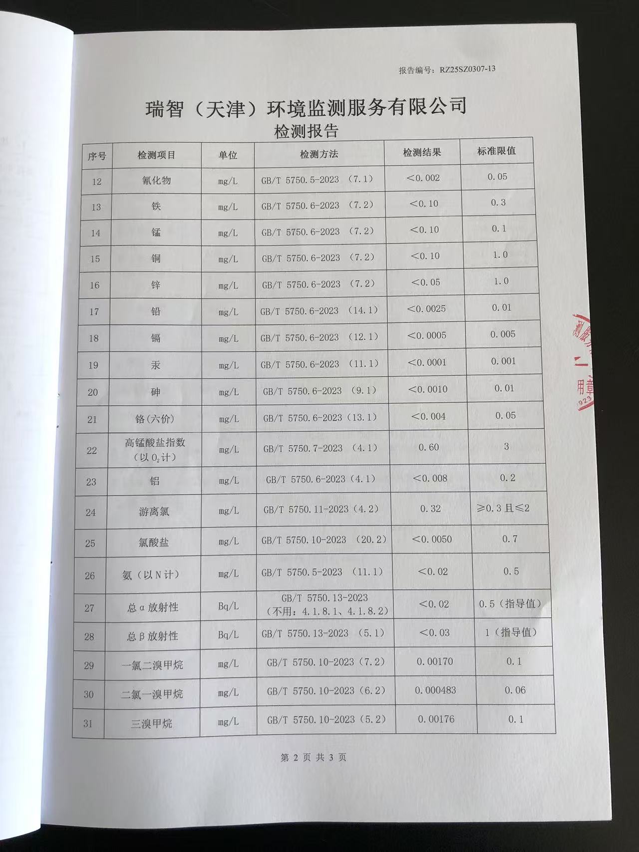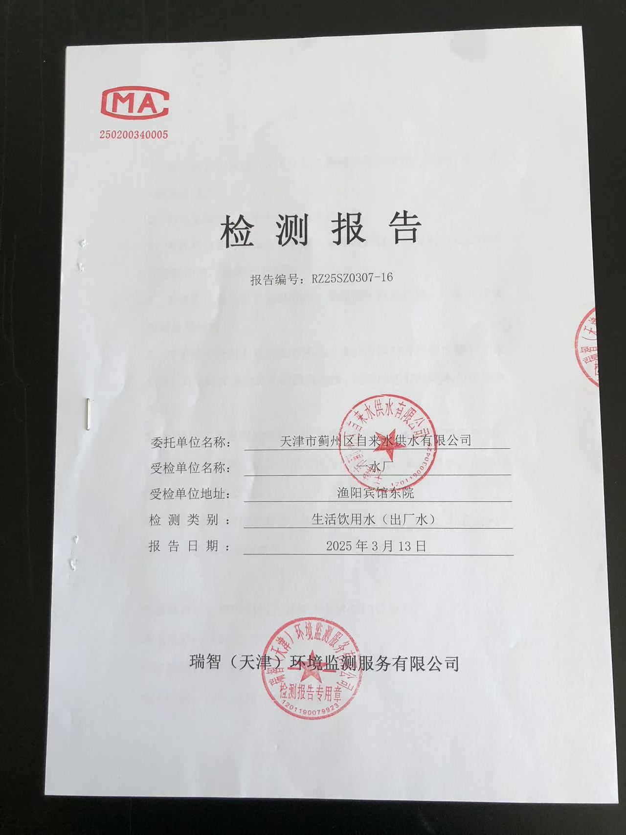 2025年3月份水質(zhì)檢測(cè)報(bào)告