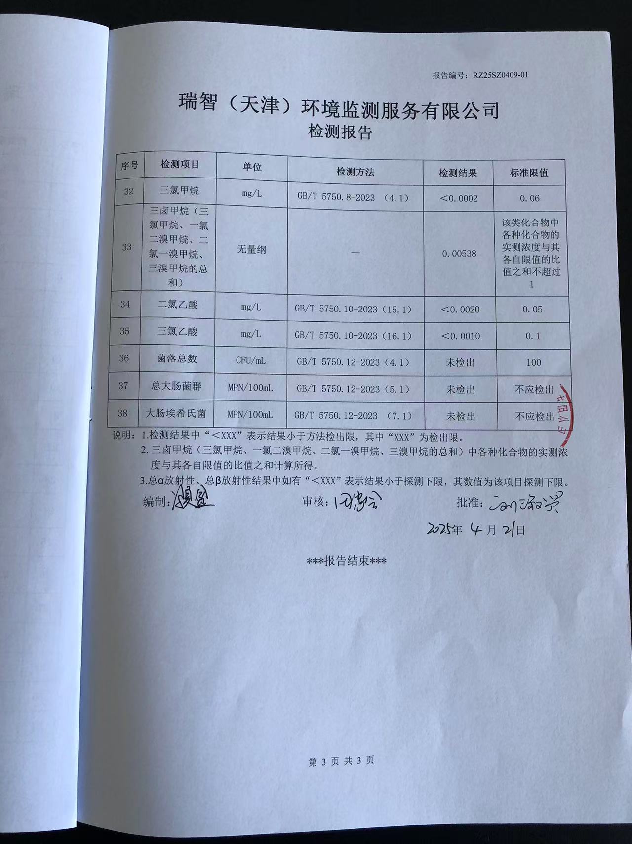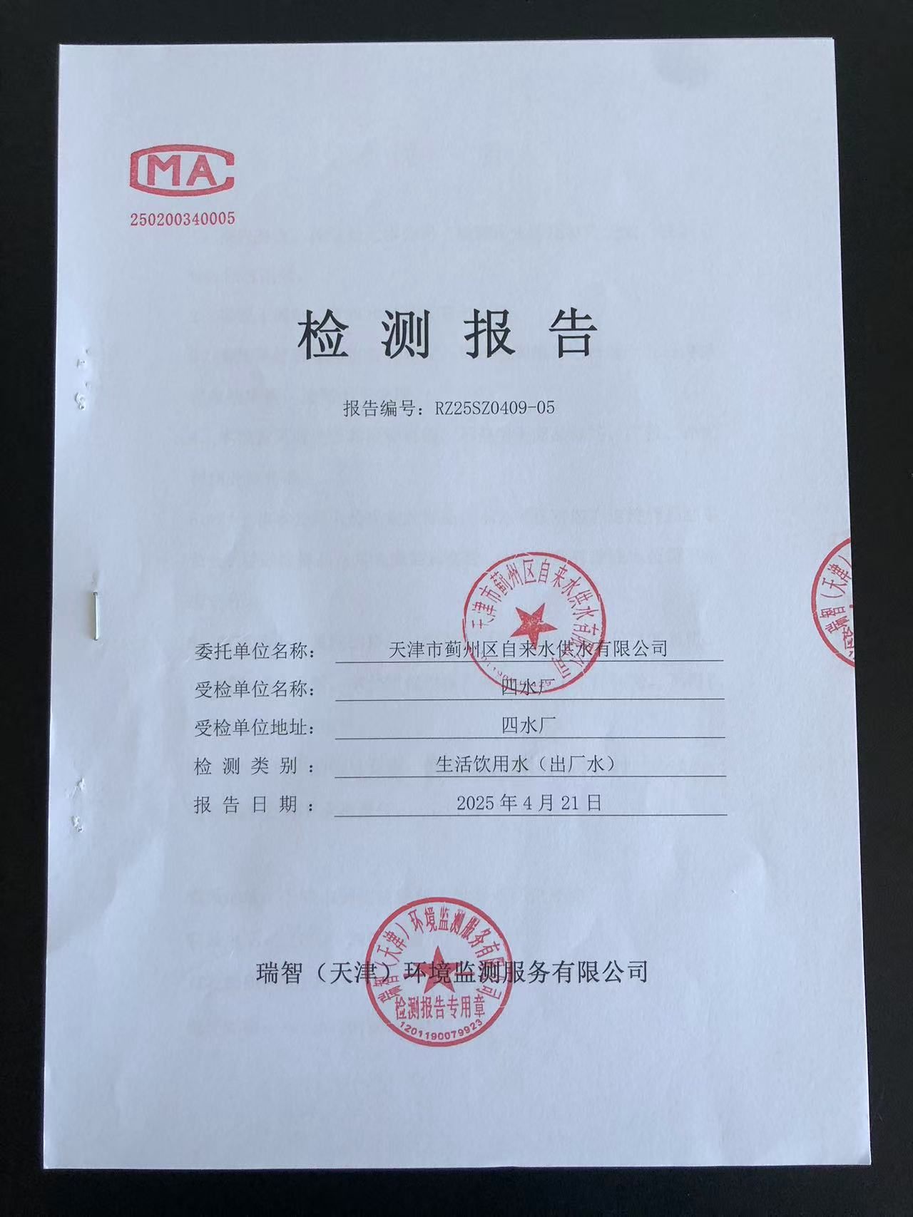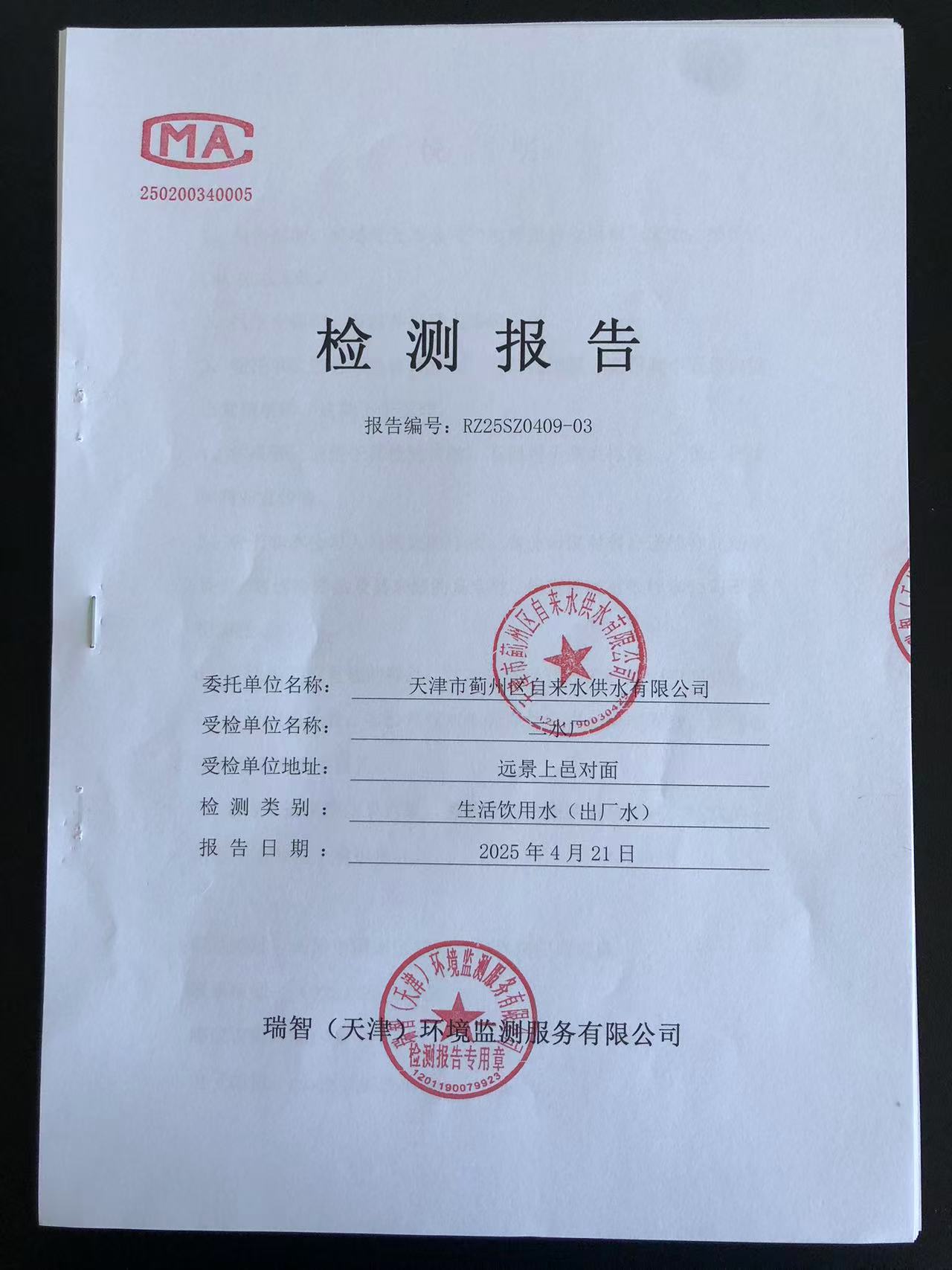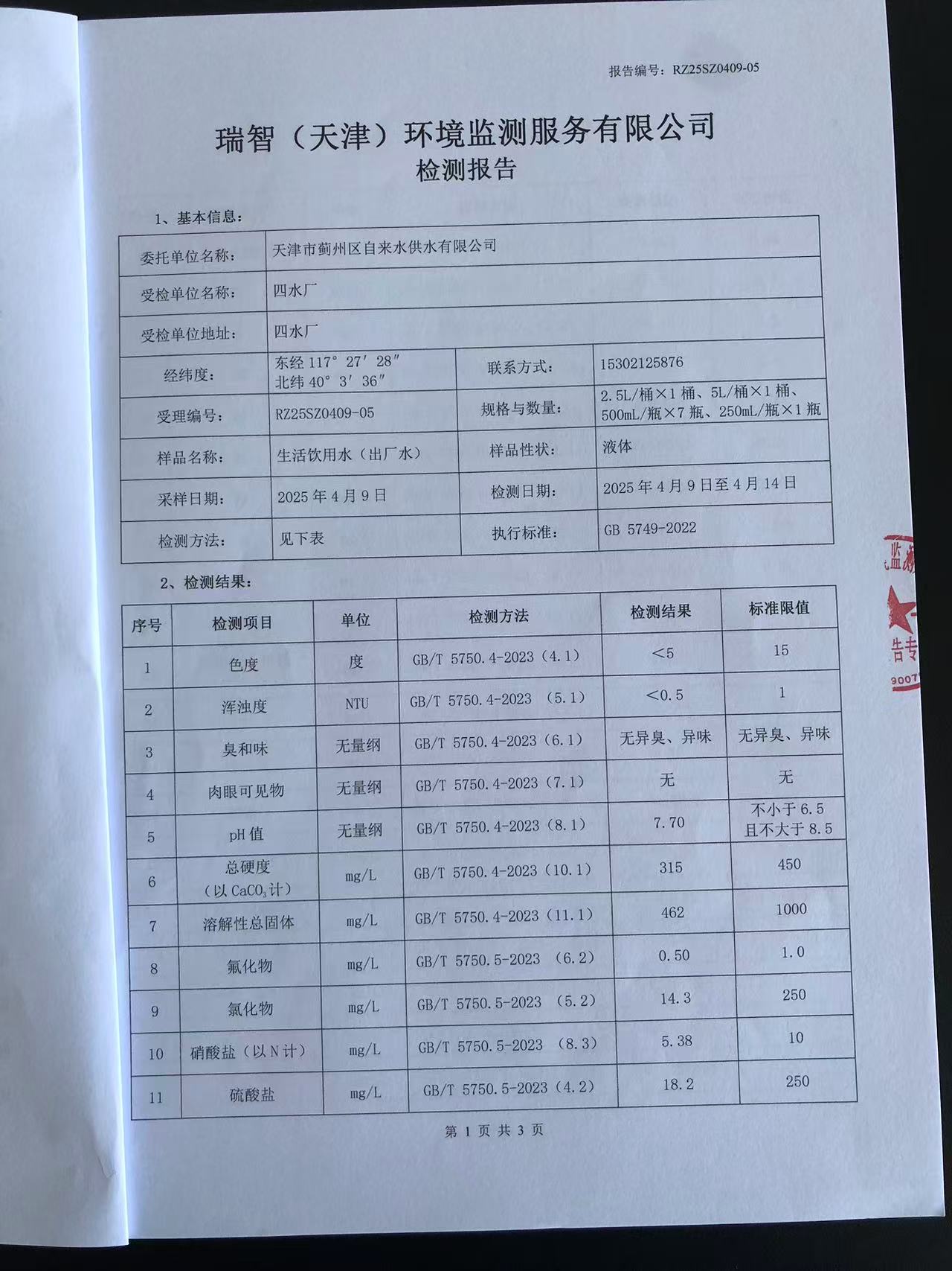 2025年4月份水質(zhì)檢測(cè)報(bào)告