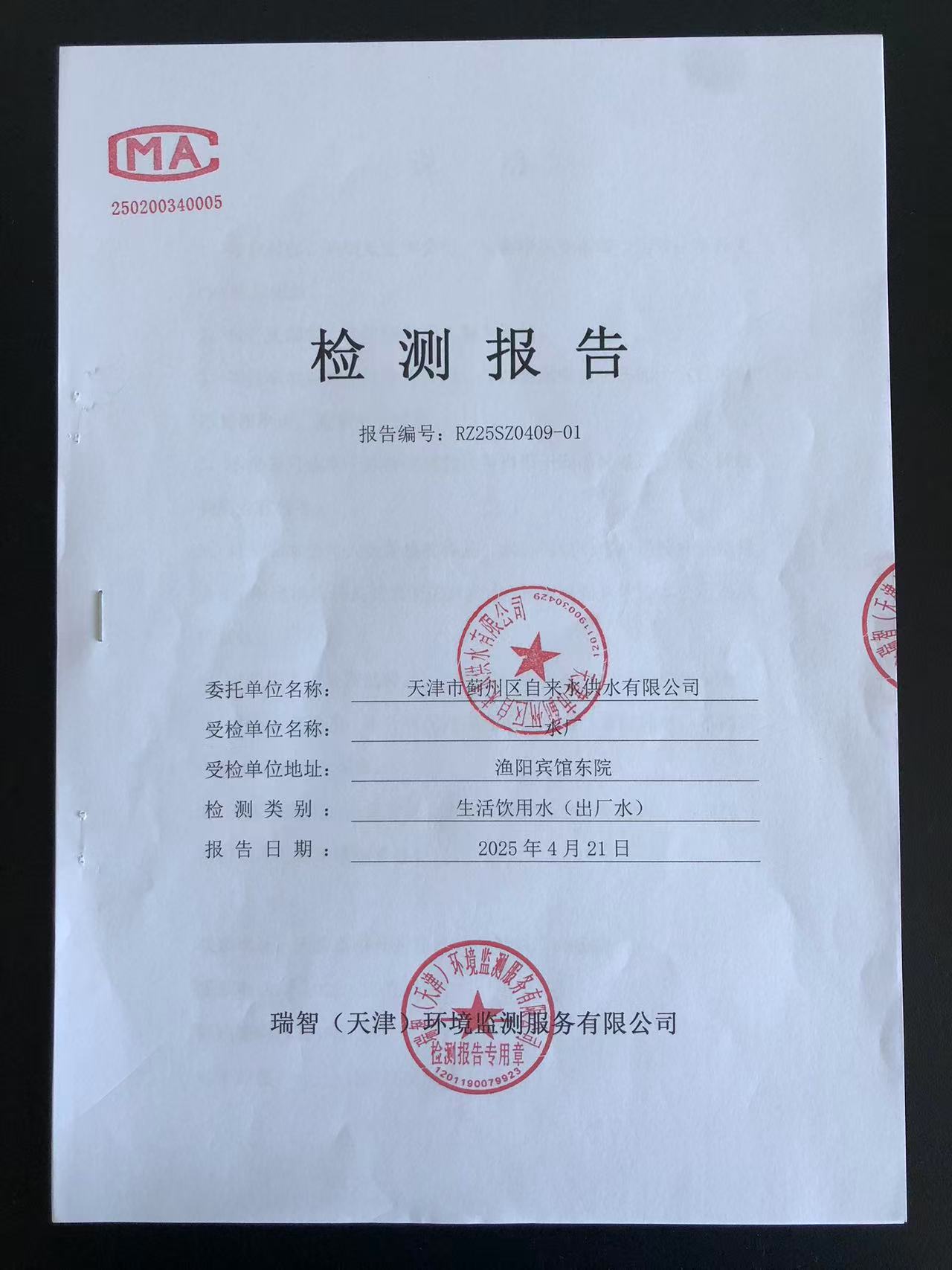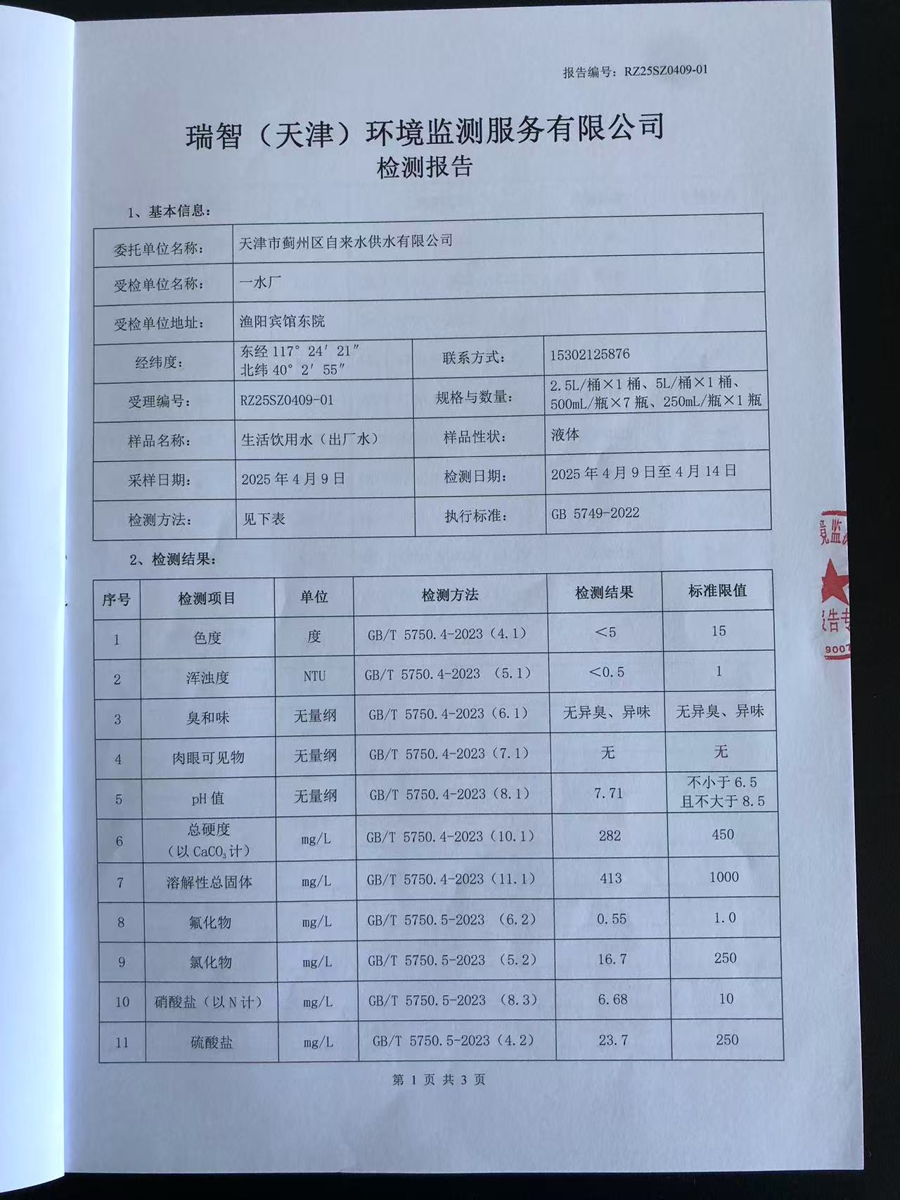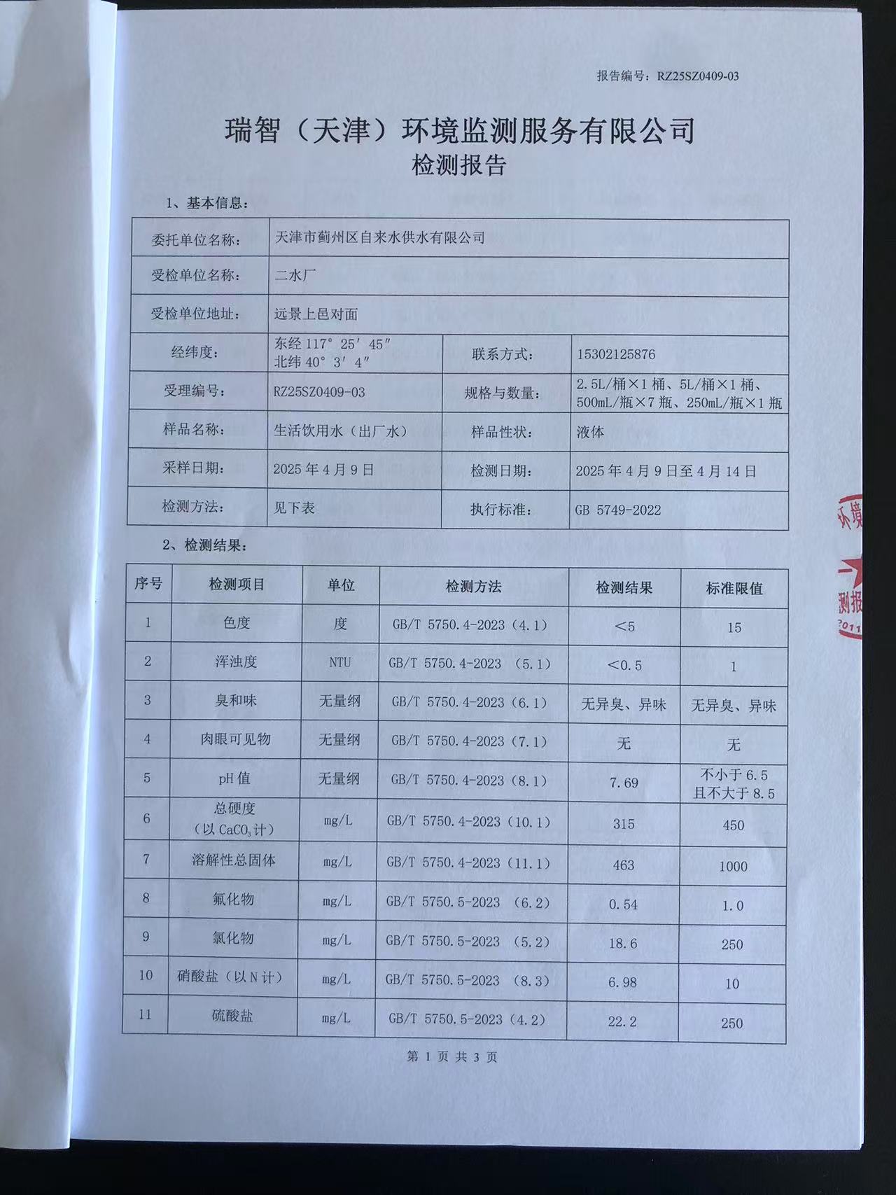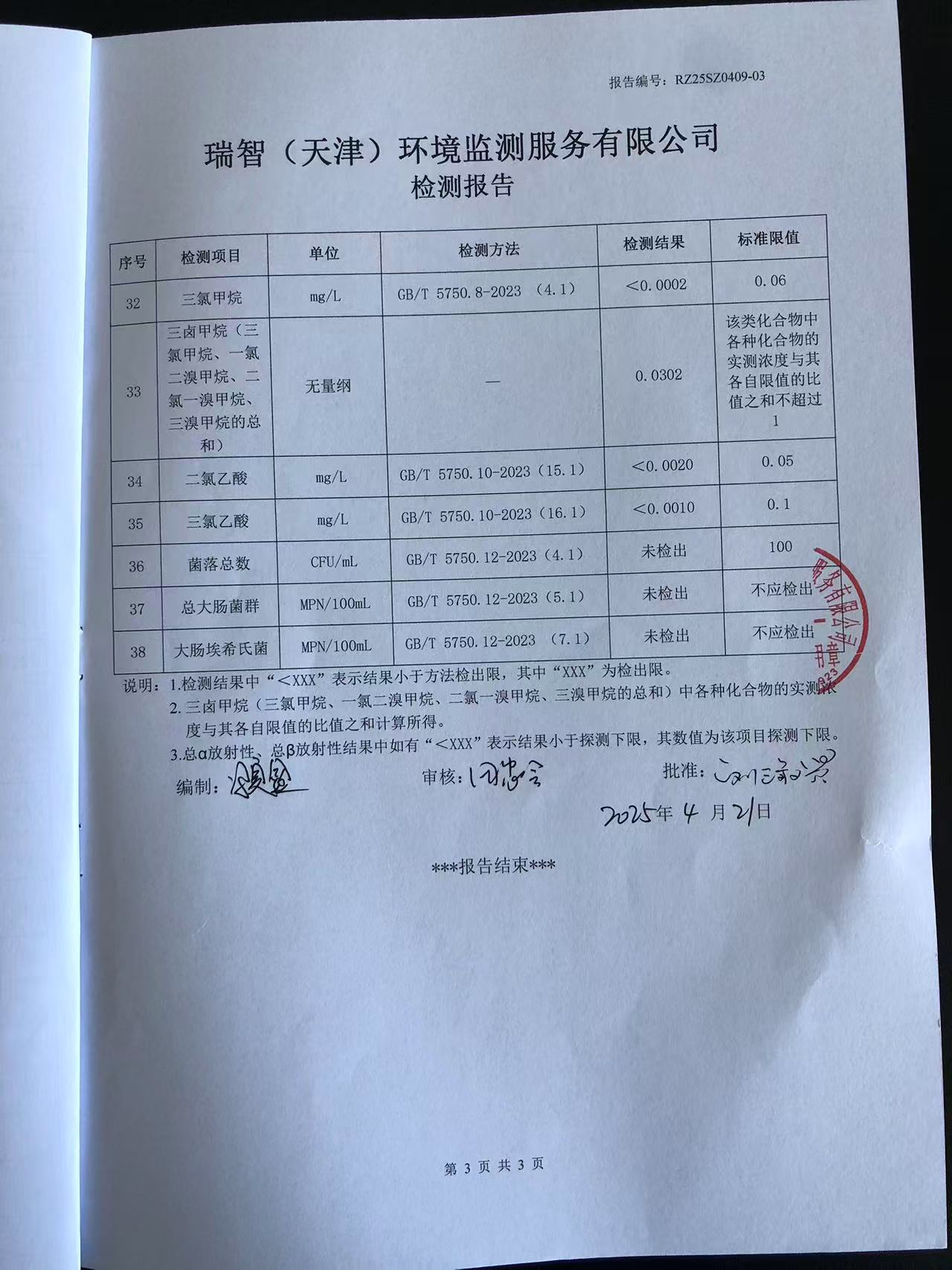 2025年4月份水質(zhì)檢測(cè)報(bào)告