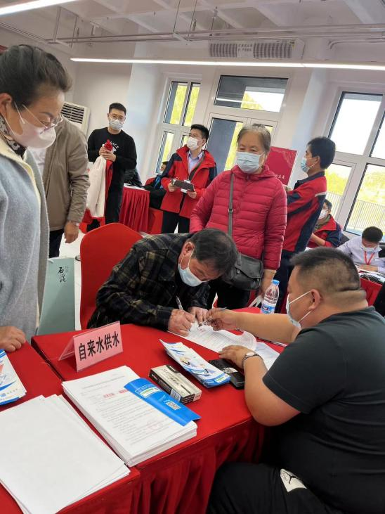 在收到格調(diào)石溪花園小區(qū)項(xiàng)目交房的消息后,我單位領(lǐng)導(dǎo)立即與小區(qū)開發(fā)商進(jìn)行了溝通協(xié)商,由單位領(lǐng)導(dǎo)帶隊(duì),組織水費(fèi)核收大廳、工程科多名工作人員,于10月31日至11月2日前往交房現(xiàn)場給居民用戶辦理供用水手續(xù)。我單位工作人員現(xiàn)場為交房新用戶辦理供水手續(xù),并詳細(xì)講解智慧生活A(yù)PP下載及使用方法并附贈APP使用手冊,耐心解答用戶提出的疑問。