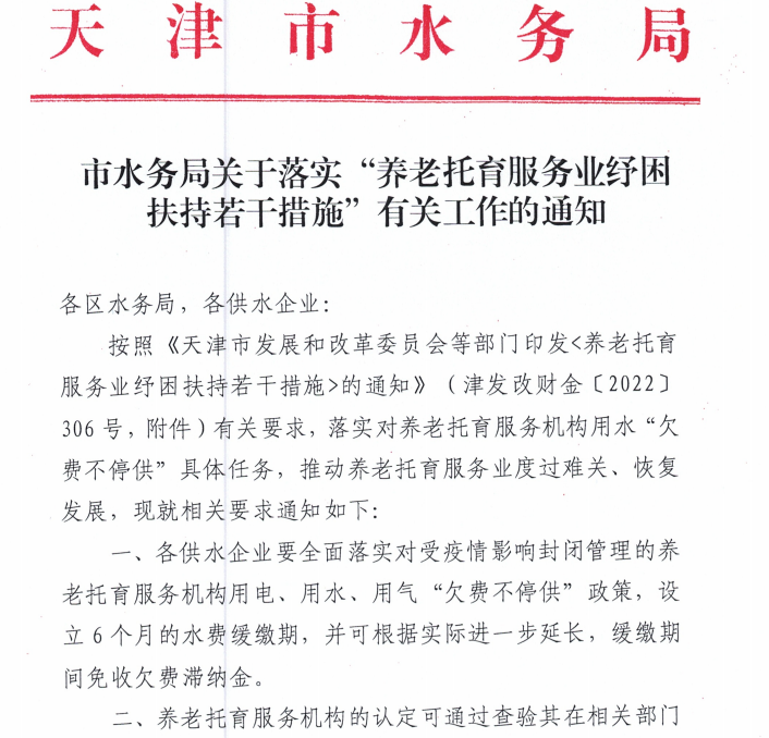 關(guān)于落實“養(yǎng)老托育服務業(yè)紓困扶持若干措施”
